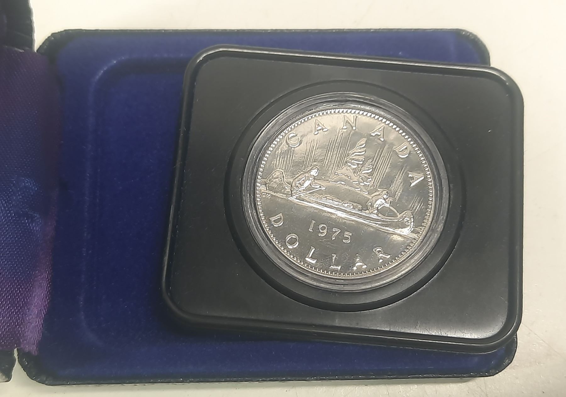 1975 Specimen Nickel Dollar. Housed in its original Royal Canadian Mint blue clamshell case.