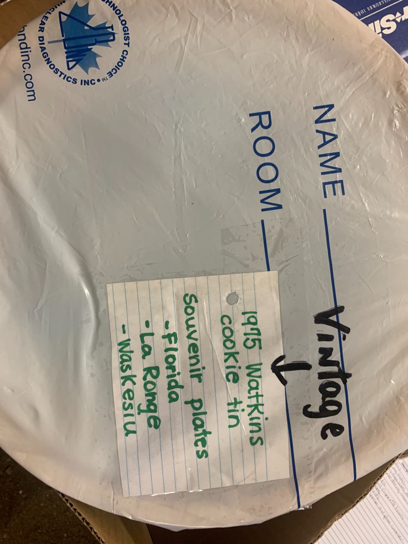 1975 Watkins cookie tin and 3 souvenir plates - Florida, La Ronge, Waskesiu