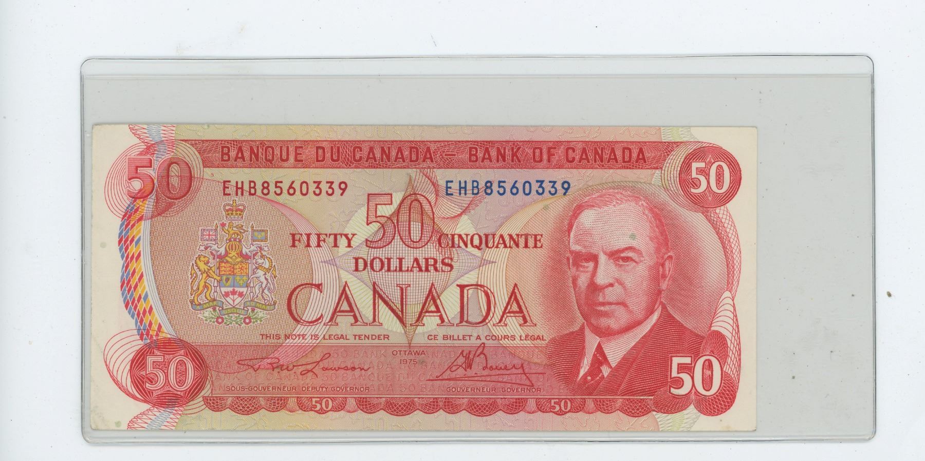 1975 bank of canada fifty dollar bill, BC-51a-i