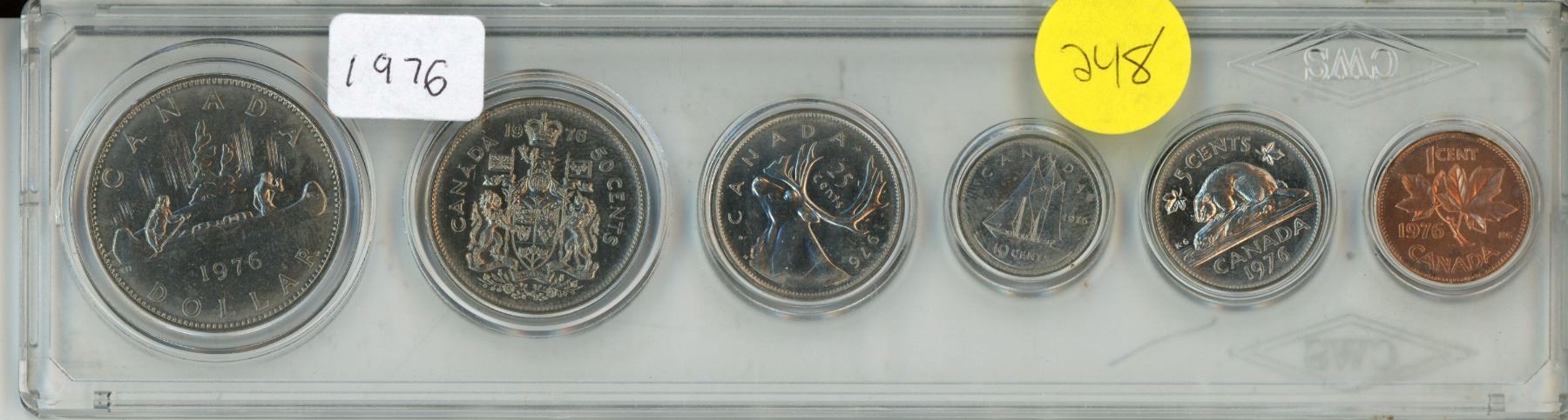 1976 6X Canadian Coin Set (Penny, Nickel, Dime, Quarter, ¢50, Dollar)