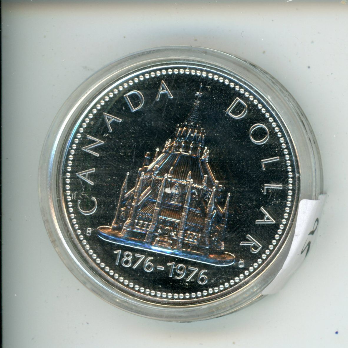 1976 Library of Parliament Silver Dollar. Specimen-65. Bright White.