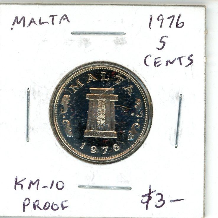 1976 Malta KM-10 Proof 5 Cent coin