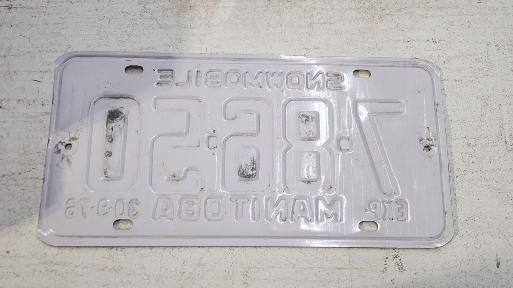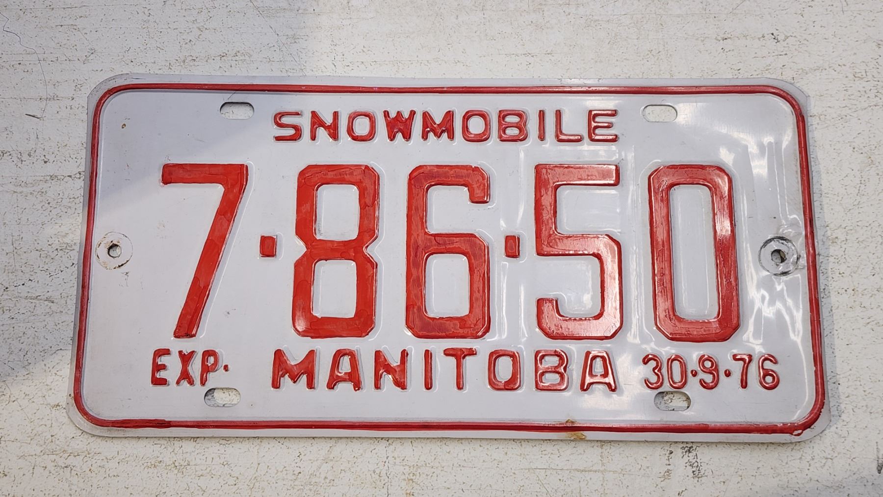 1976 Manitoba license plate - 7-86-50 Snowmobile