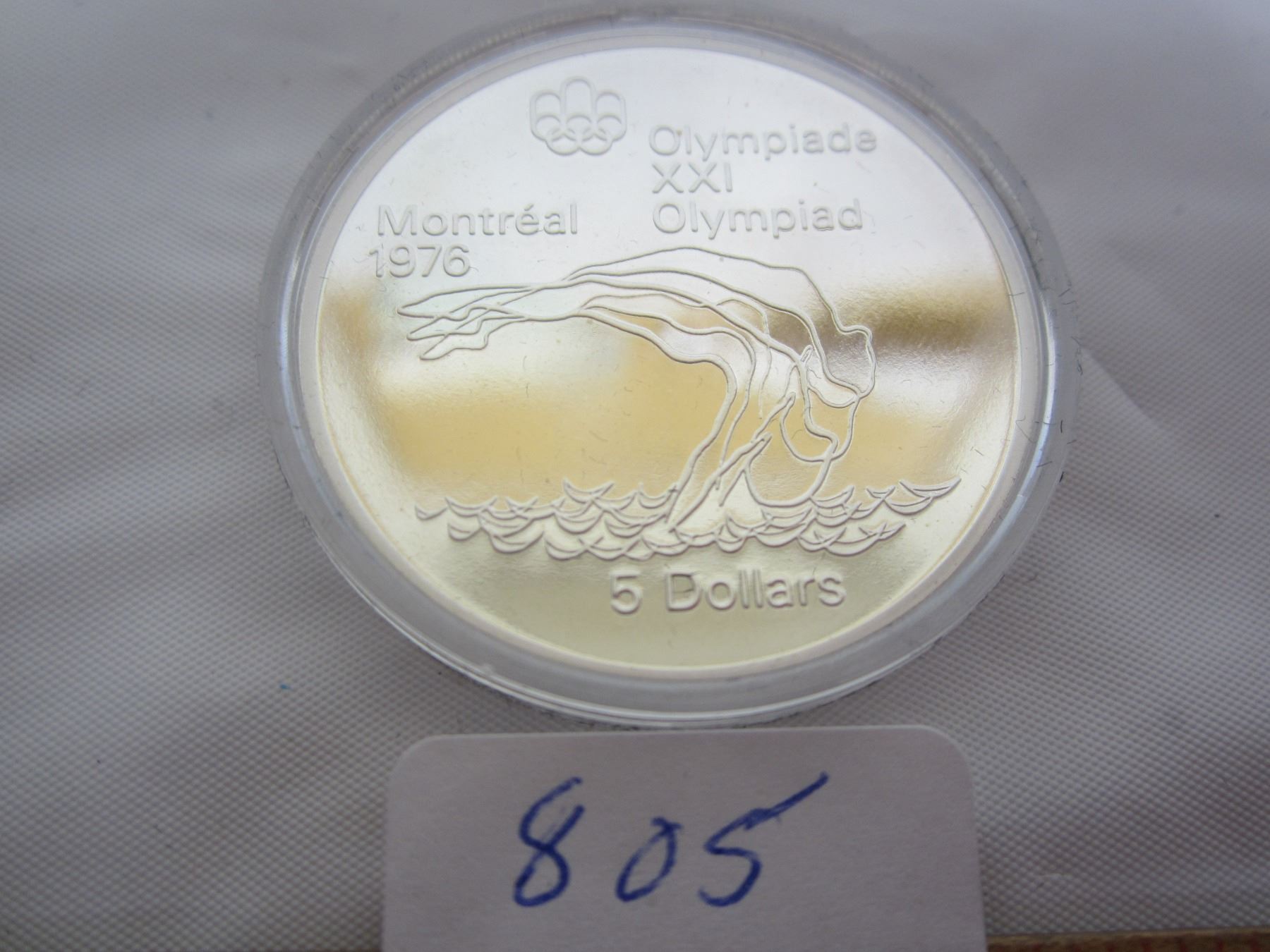 1976 Olympics 5 Dollar Coin Diving .723 Oz. Silver