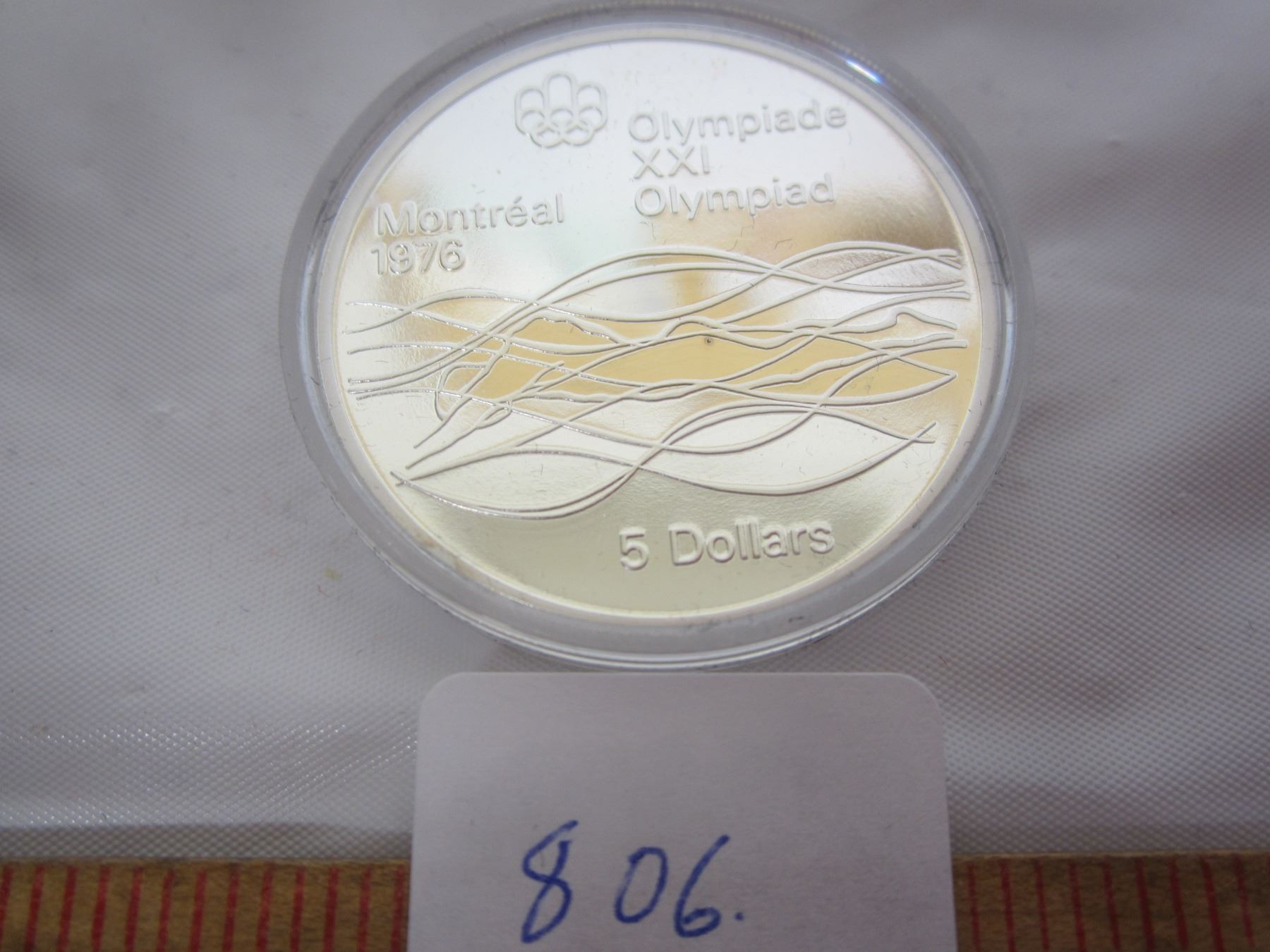 1976 Olympics 5 Dollar Coin Swimming .723 Oz. Silver
