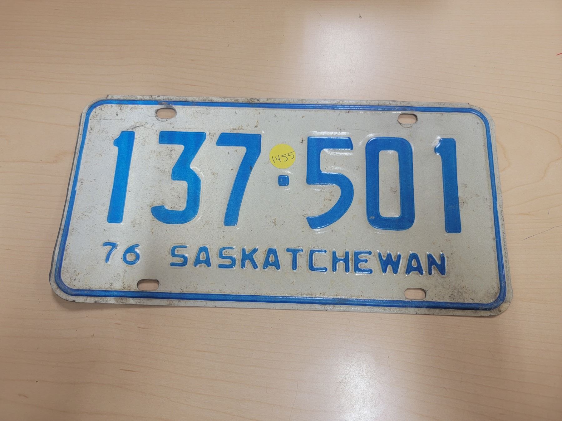 1976 Sask license plate 137-501
