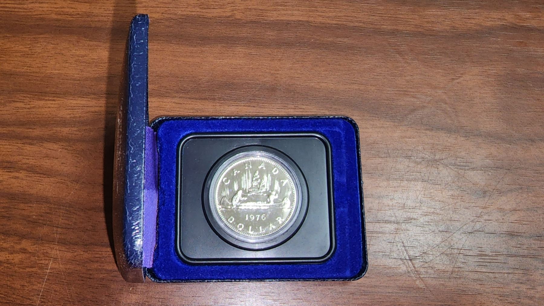 1976 Specimen Voyageur Dollar. Housed in its original blue case of issue.