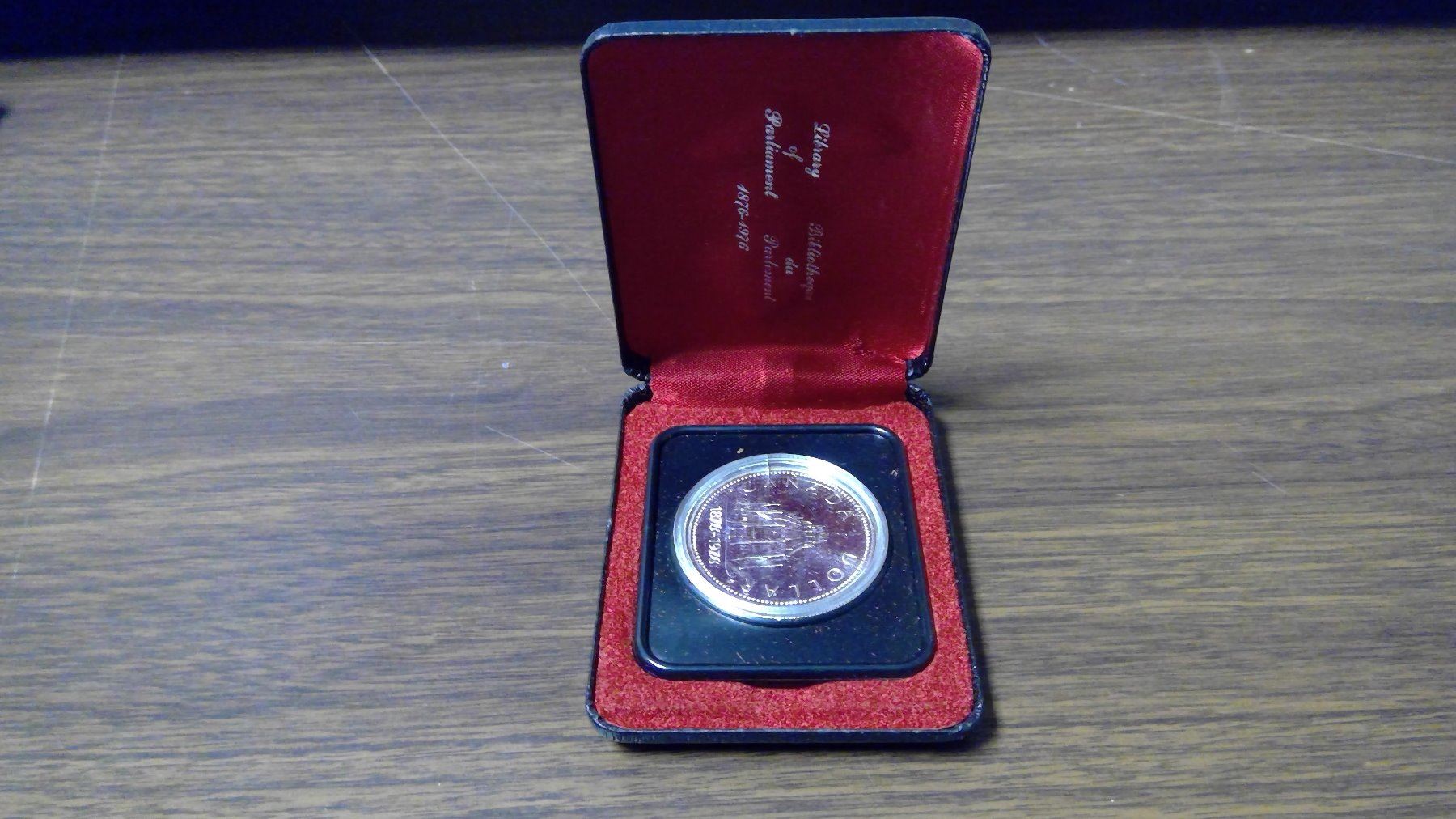 1976 Specimen silver dollar. Centennial of the completion of the Library of Parliament. Cased.