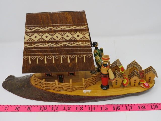 1976 USSR WOODEN, UKRAINIAN CARVED COUNTRY BANK