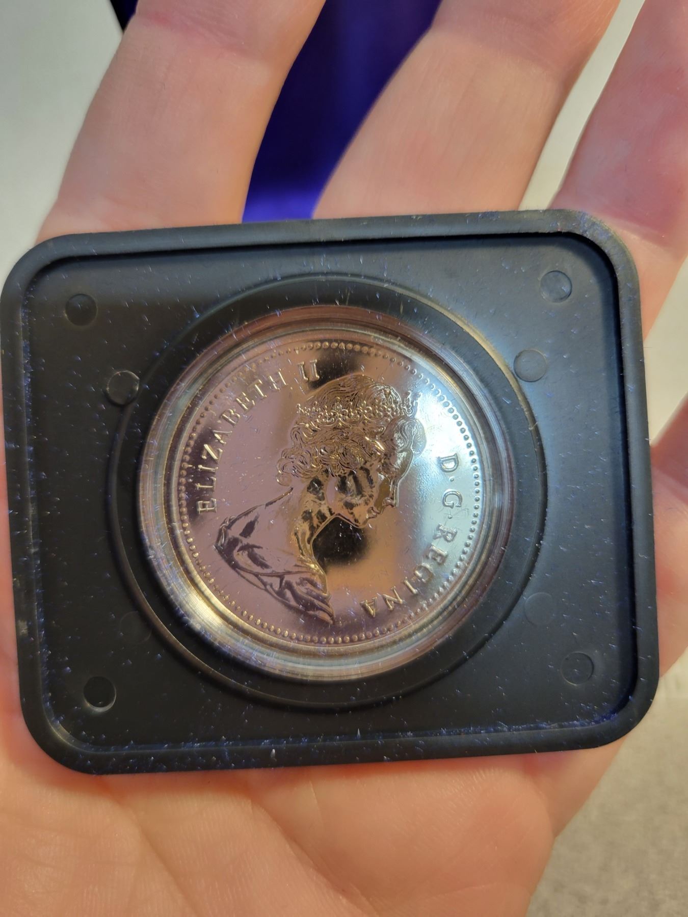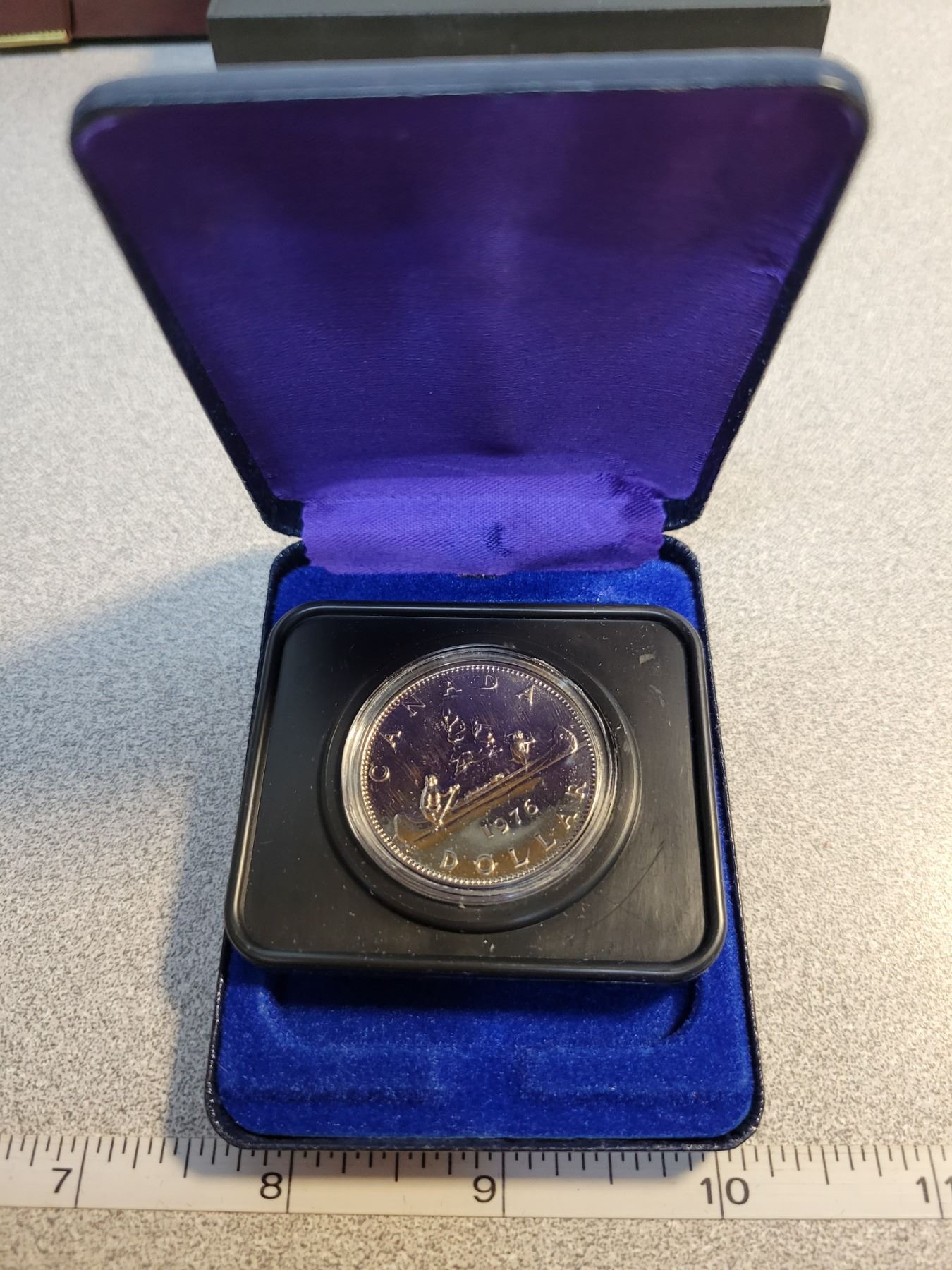 1976 Voyageur Nickel Dollar. Specimen. Bright White. Housed in its original blue clamshell case of issue.