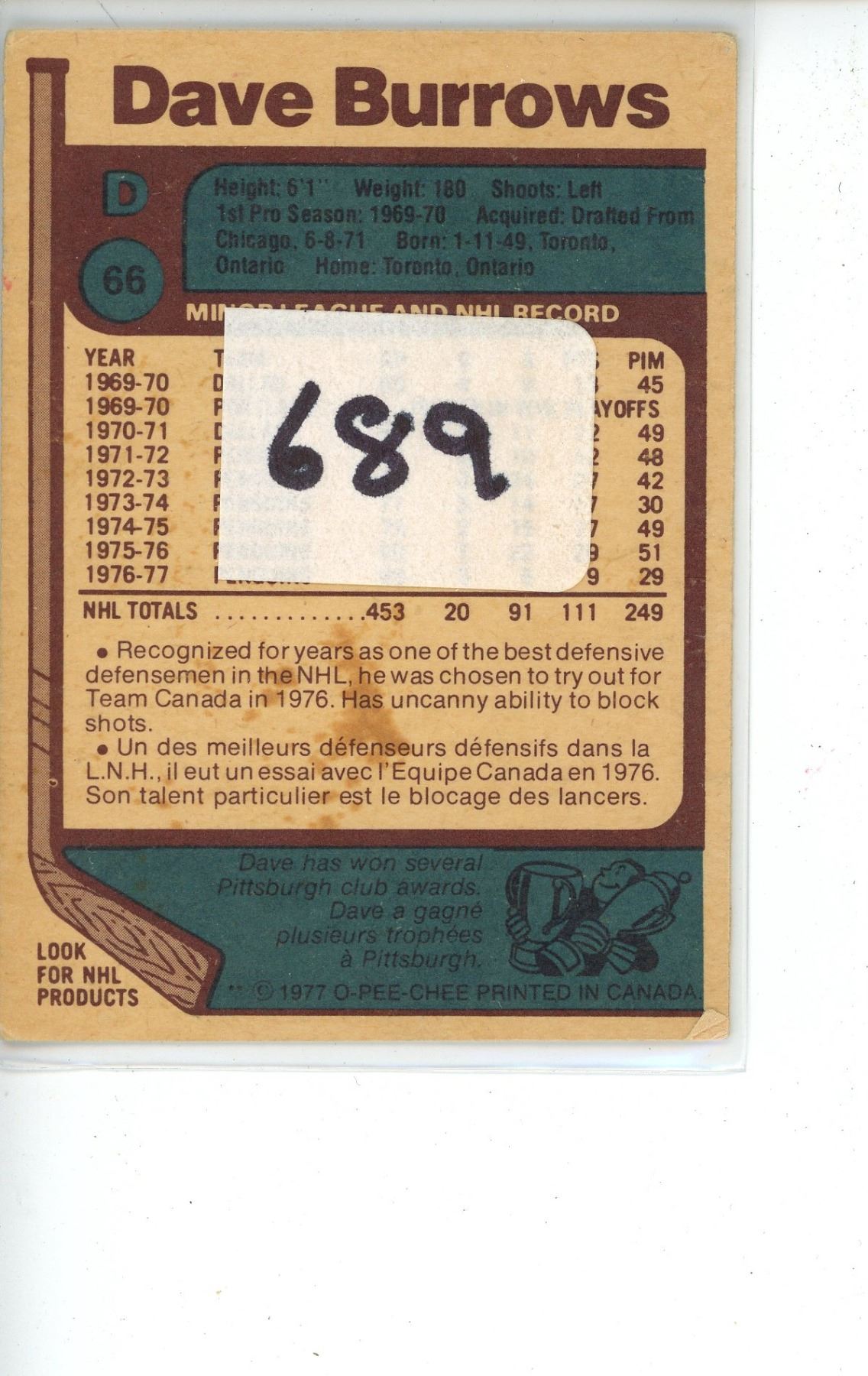 1977-78 OPC Dave Burrows