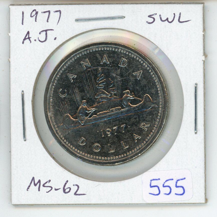 1977 Attached Jewel Short Water Lines Canadian Nickel Dollar. MS-62. Scarce.