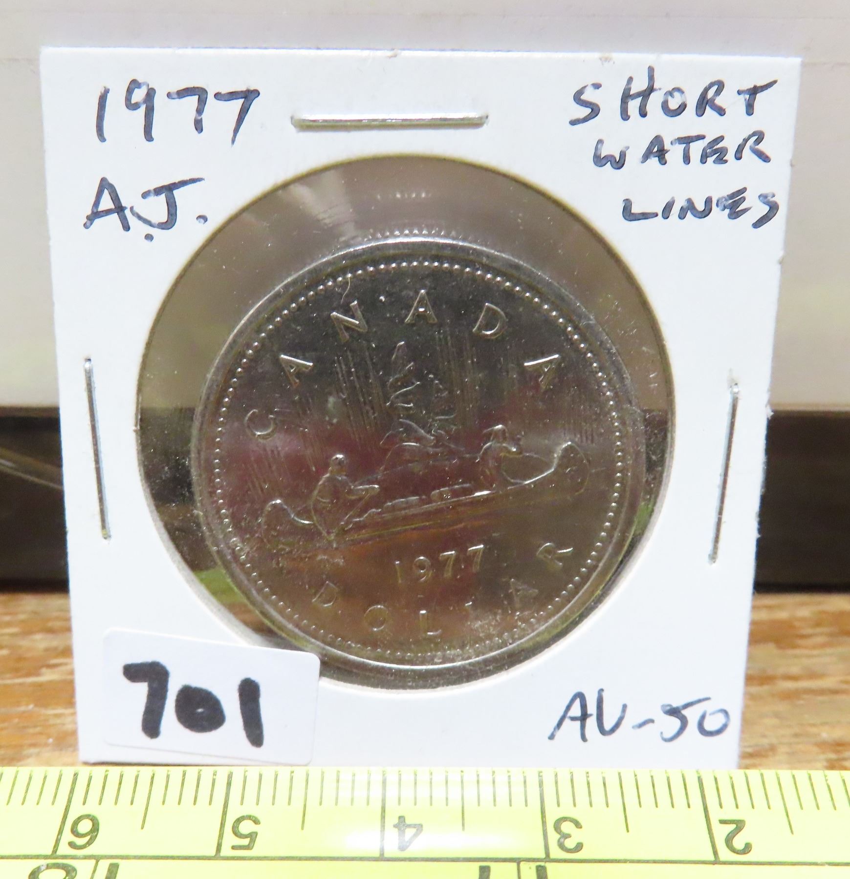 1977 Attached Jewels Short Water Lines Nickel Dollar. AU-50, Scarce variety.