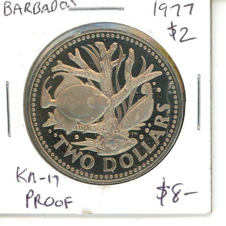 1977 Barbados Km-17 Proof 2 Dollar Coin