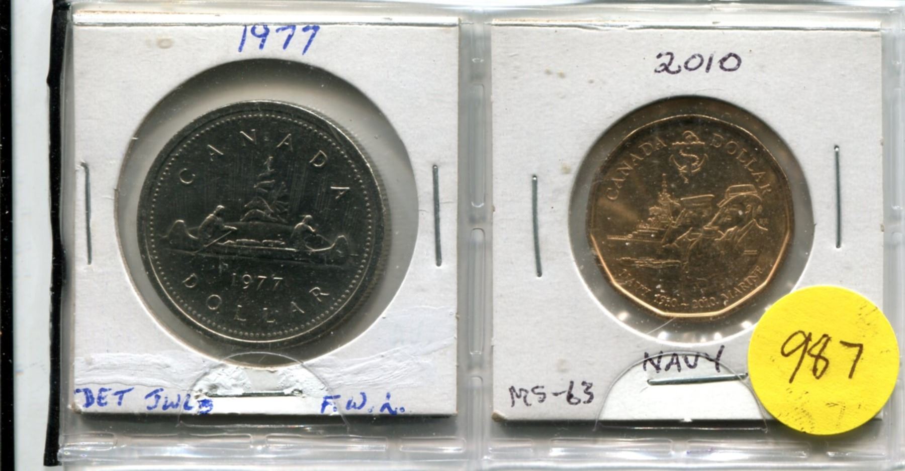 1977 FWL - Det Jewels Nickel Dollar and 2010 Navy Loonie