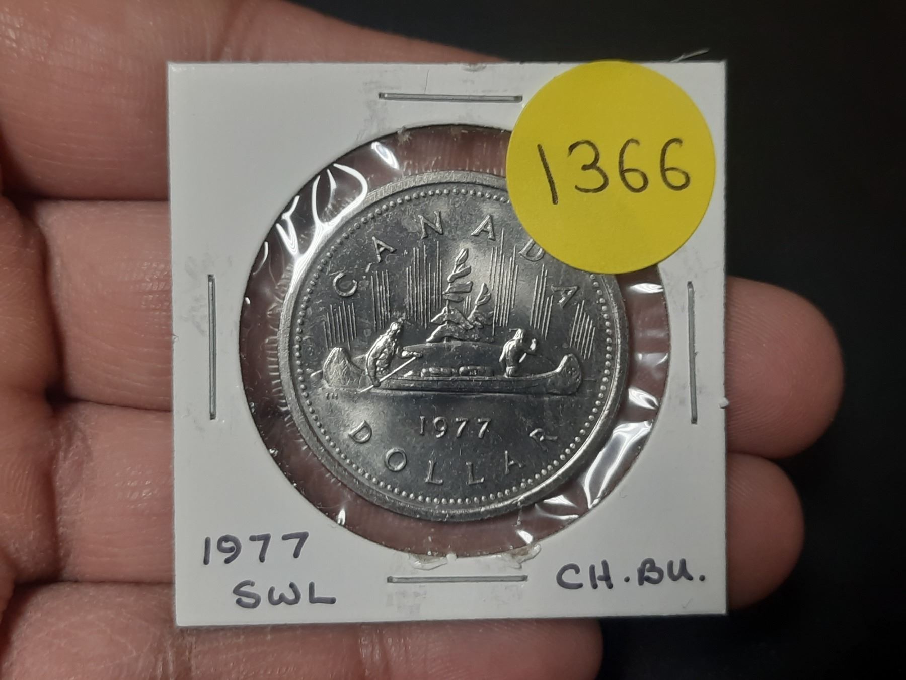 1977 Nickel Dollar with Short Water Lines in front of canoe. BU. Scarce.