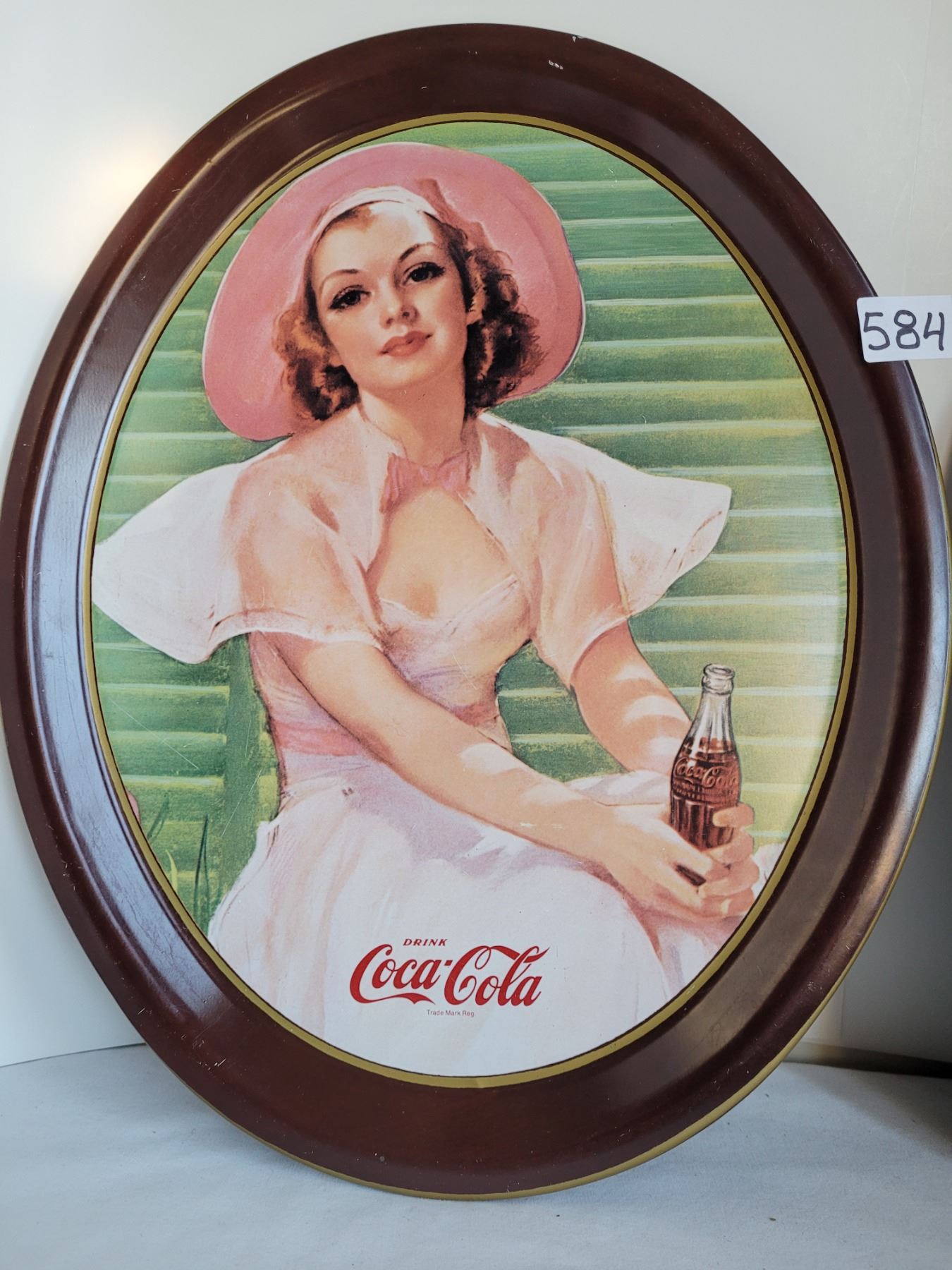 1977 Oval Coca-Cola reproduction tray of a 1933 calendar girl.