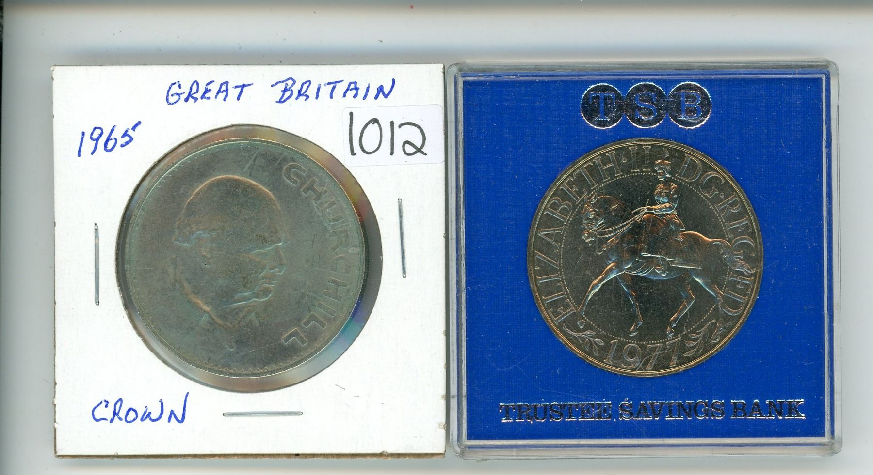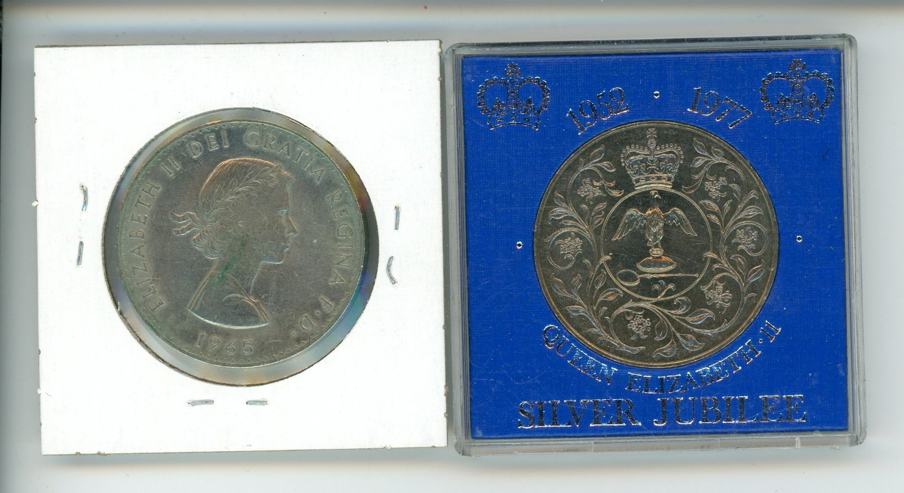 1977 Queen Elizabeth 11 Silver Jubilee commemorative coin and 1965 great Britain crown