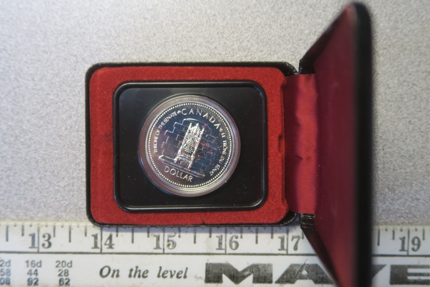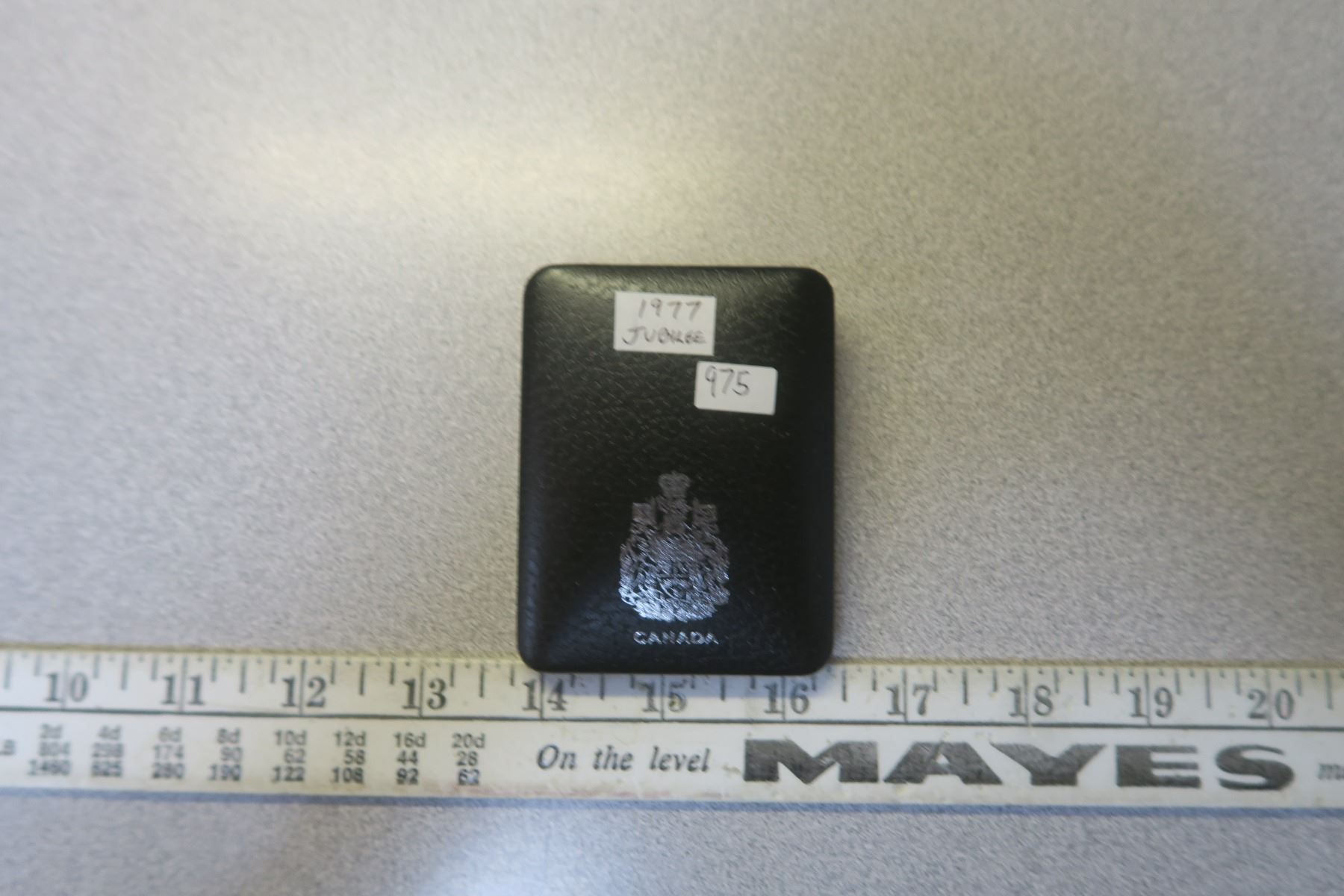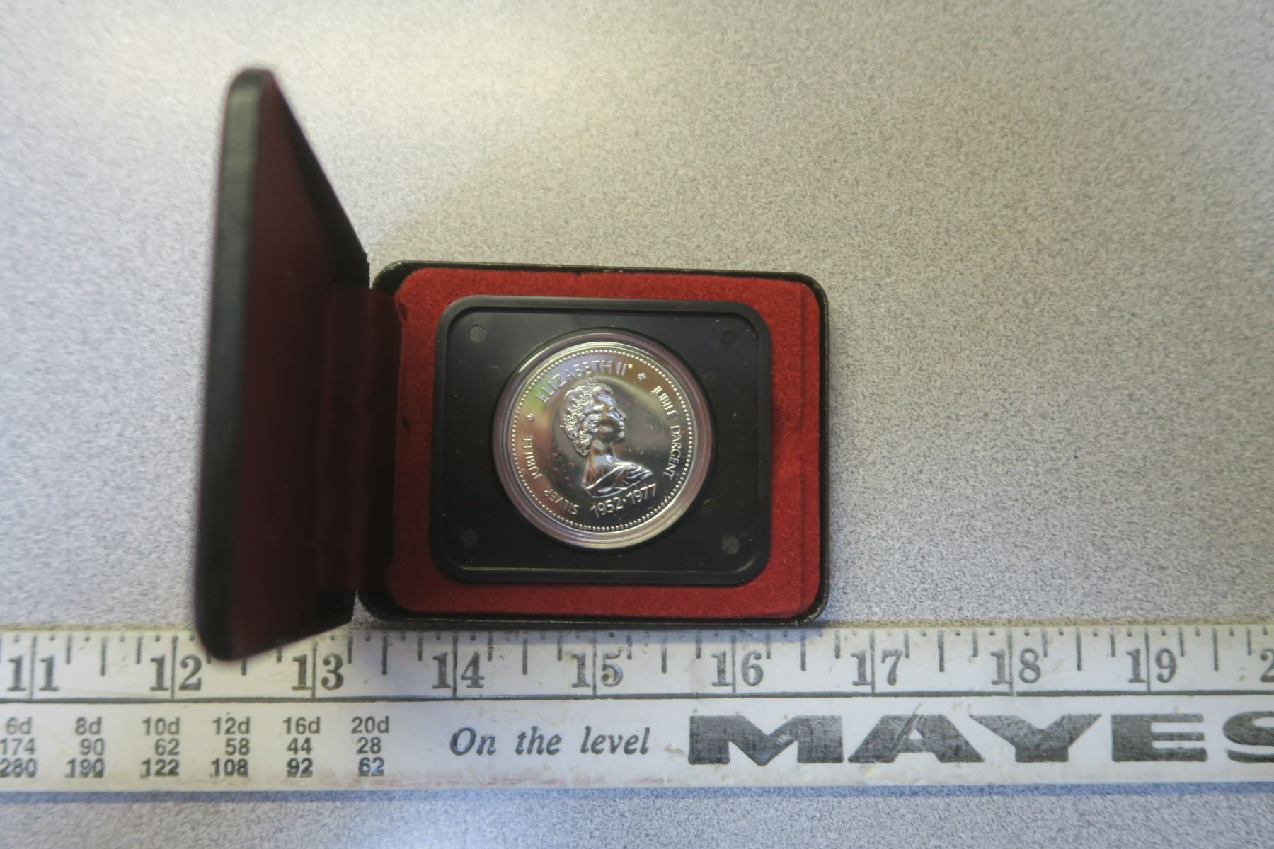1977 Queen Elizabeth Silver Jubilee Silver Dollar. 25th Anniversary of the Queen. Housed in its original black clamshell case of issue. Specimen. Bright White.