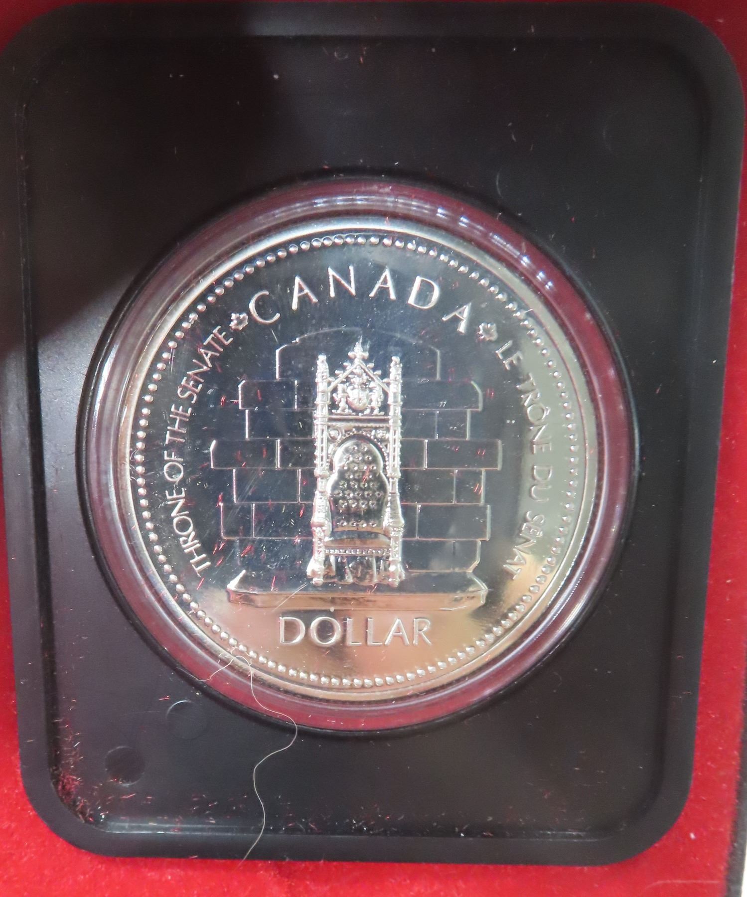 1977 Queen Elizabeth Silver Jubilee Silver Dollar. Celebrates the 25th Anniversary of Queen Elizabeth. Housed in its original RCM black clamshell case.