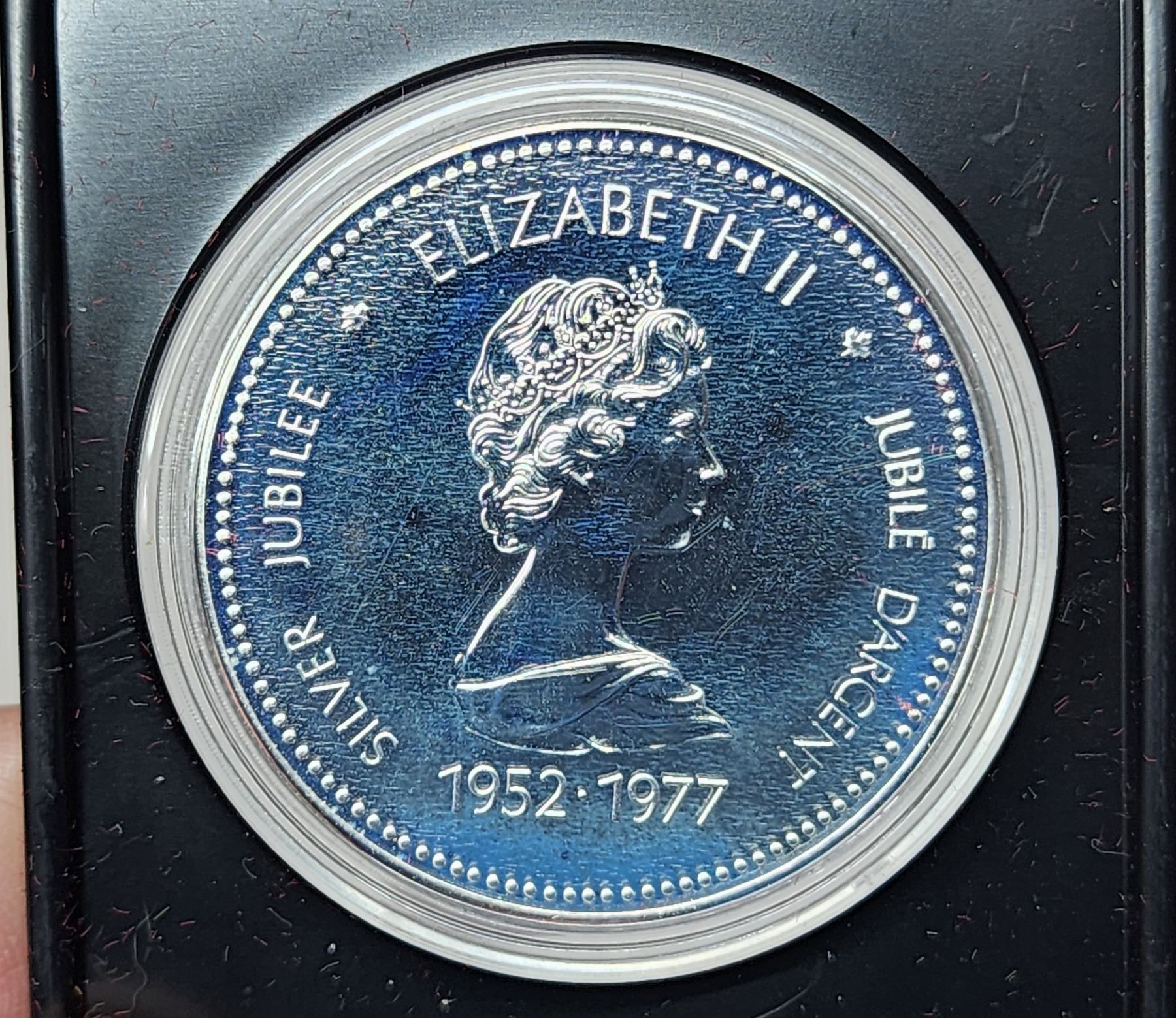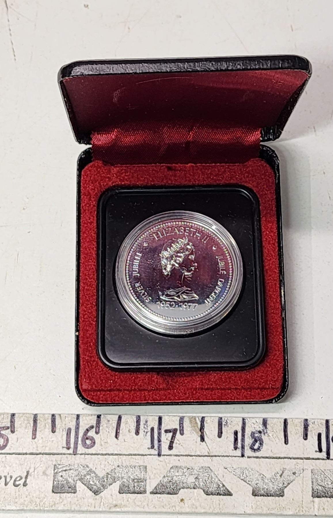 1977 Queen Elizabeth Silver Jubilee Silver Dollar. Specimen. Bright White. Housed in its original RCM case of issue.