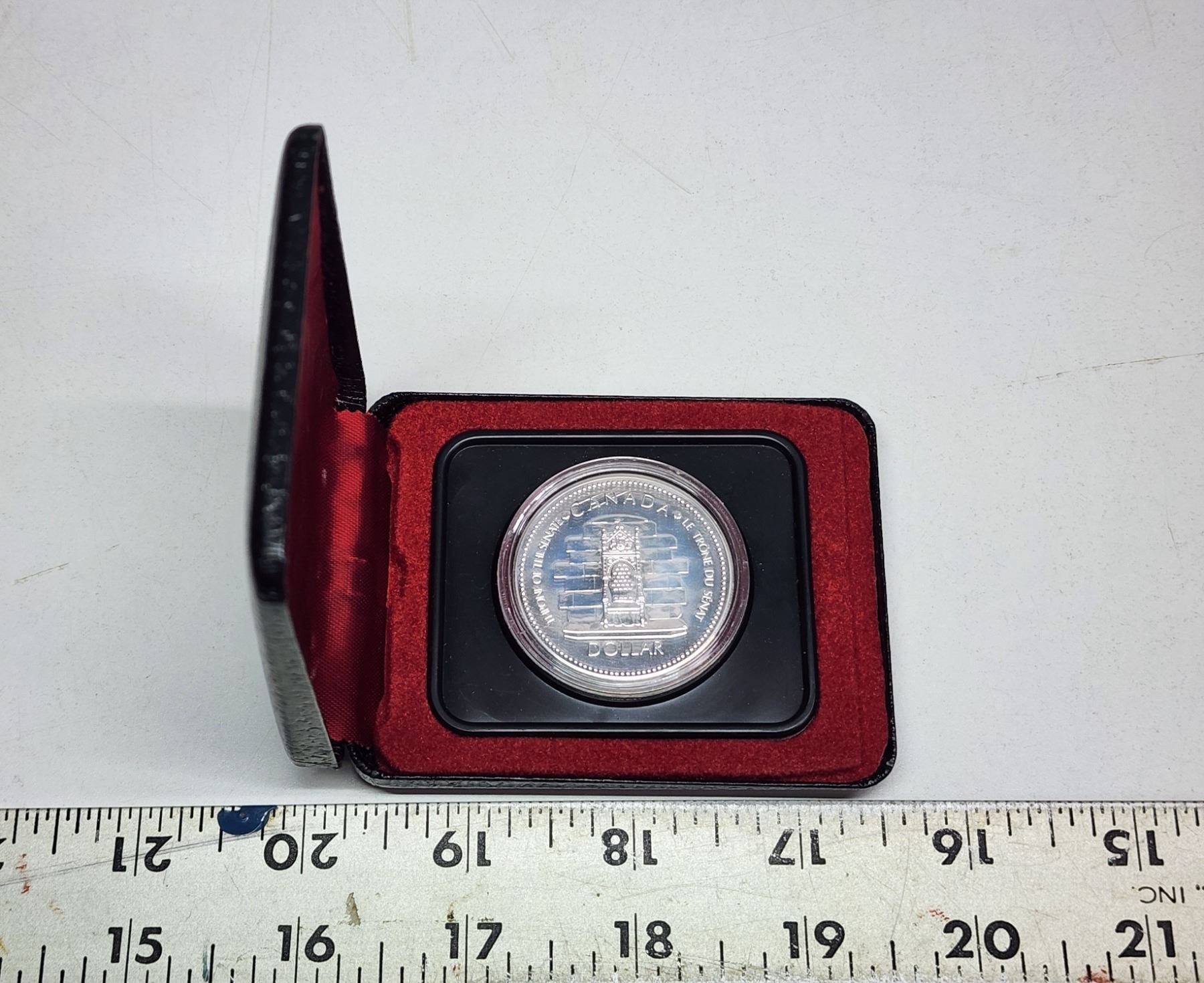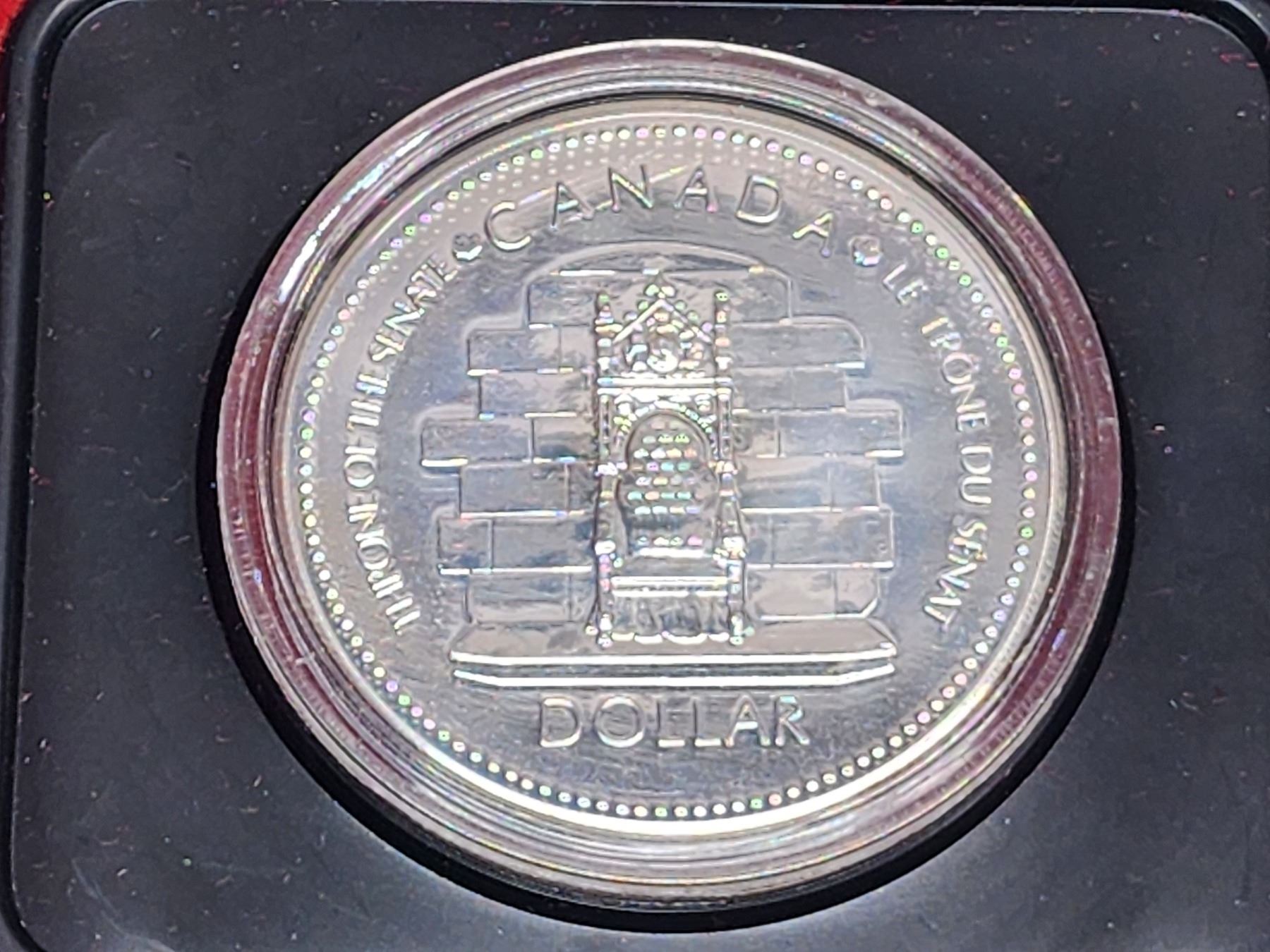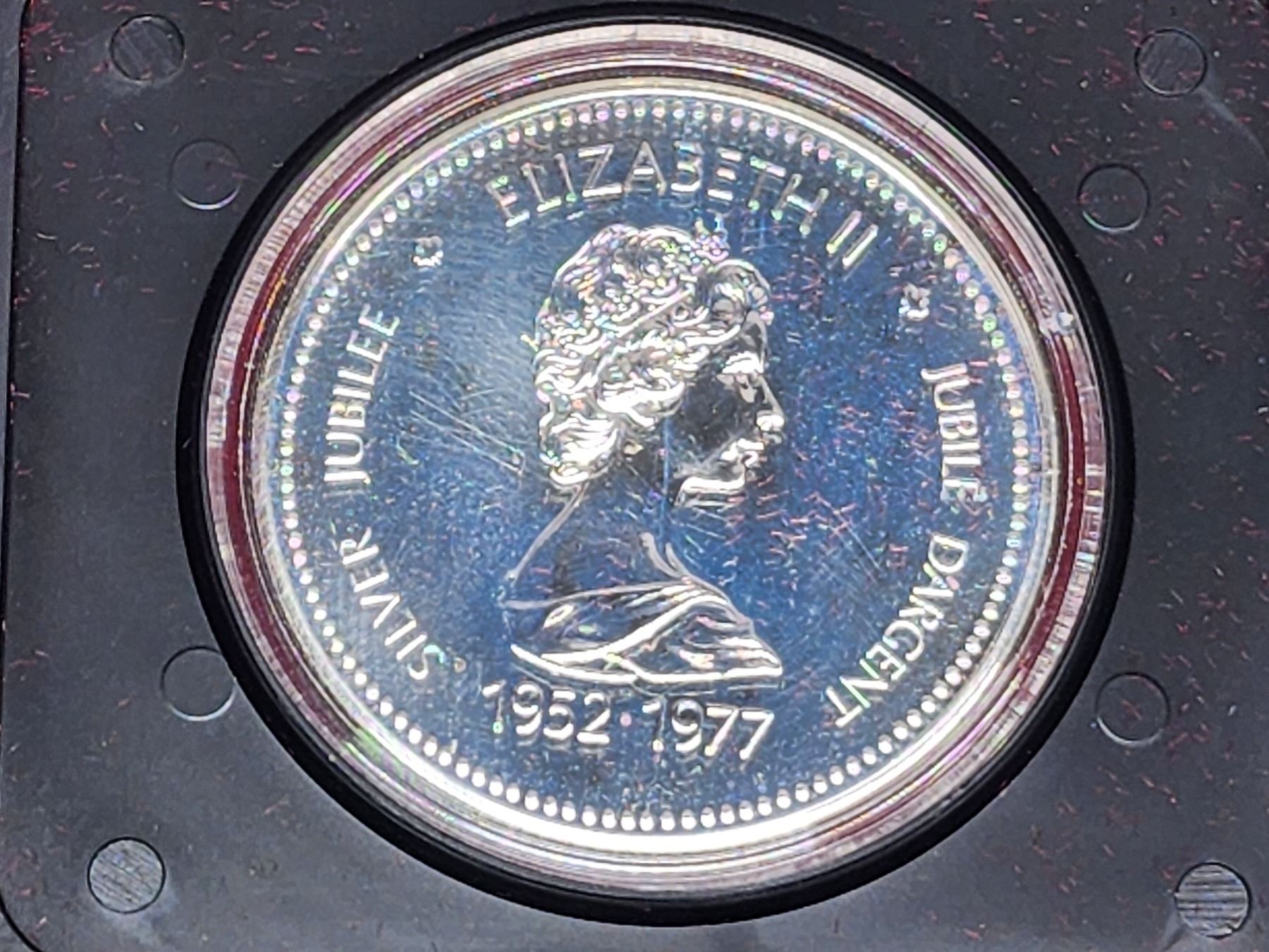 1977 Queen Elizabeth Silver Jubilee Silver Dollar. Specimen. Bright White. Housed in its original clamshell case of issue.