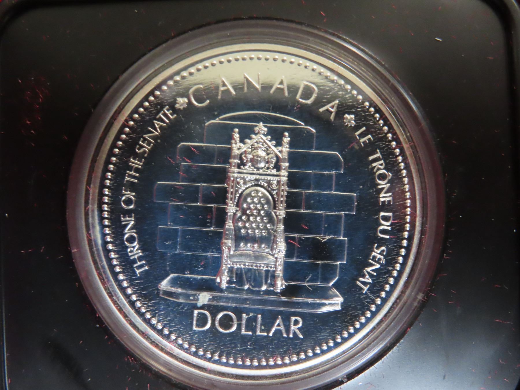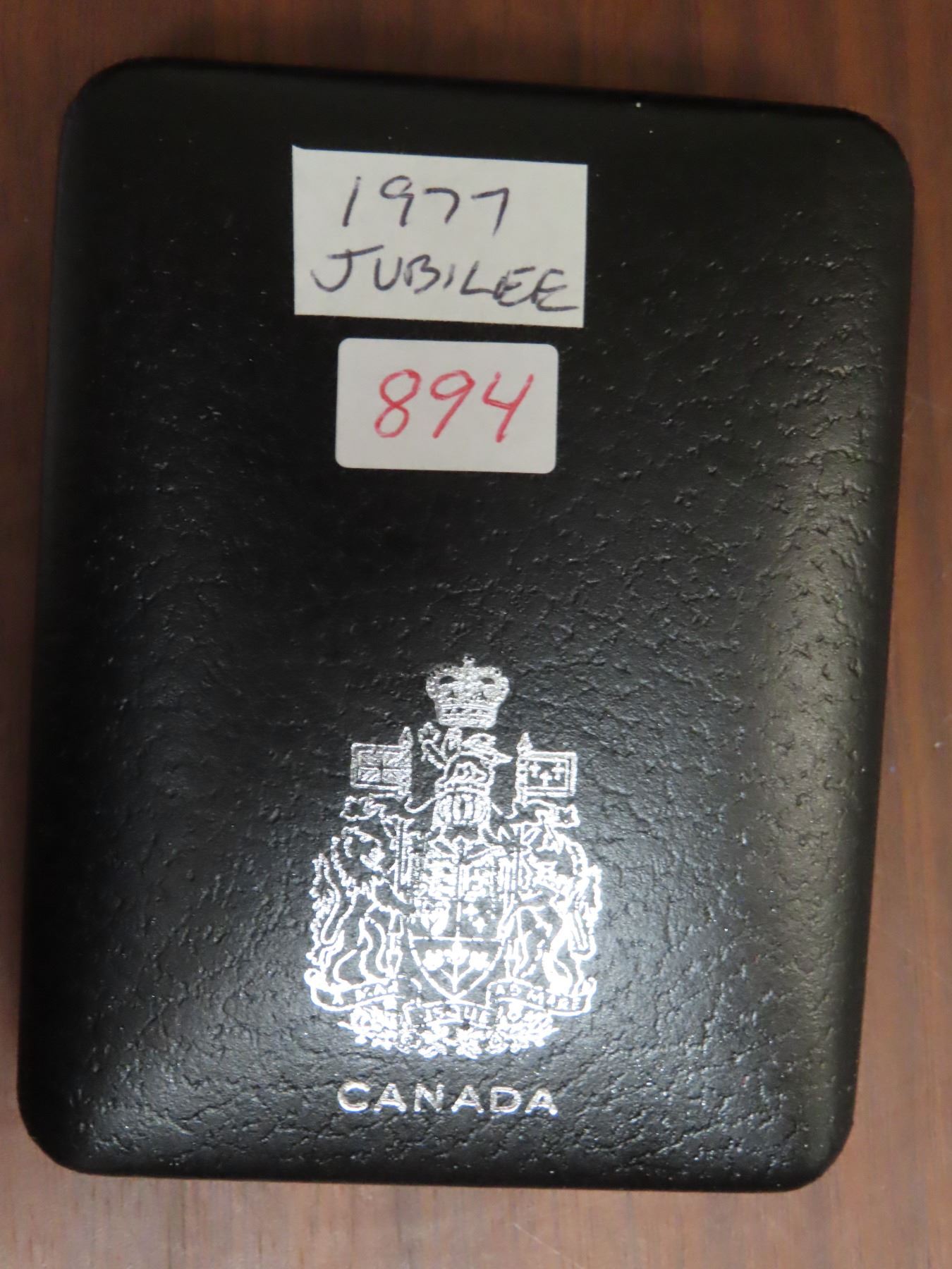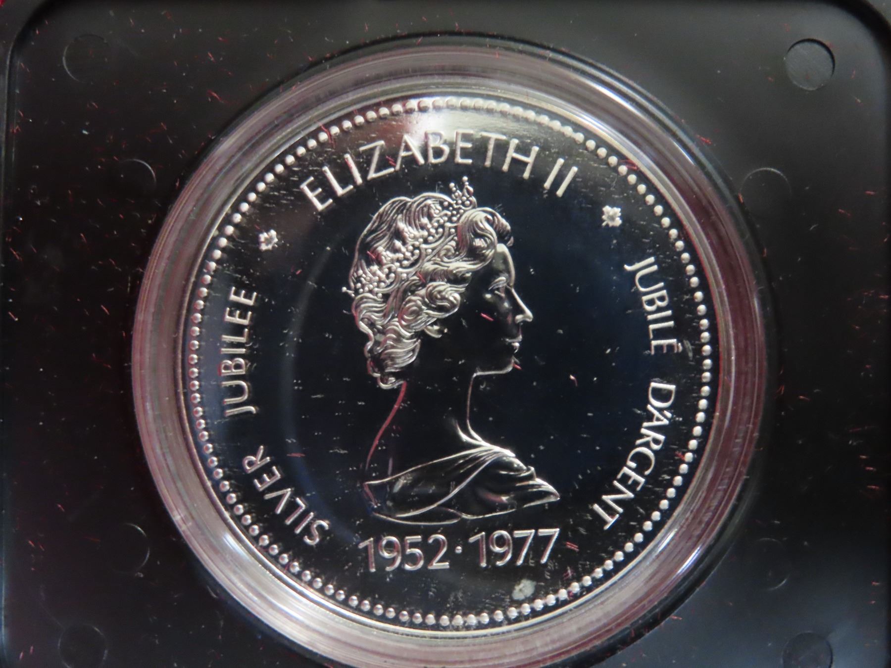 1977 Queen Elizabeth Silver Jubilee Specimen Silver Dollar. Bright White. Housed in its original black clamshell case of issue.