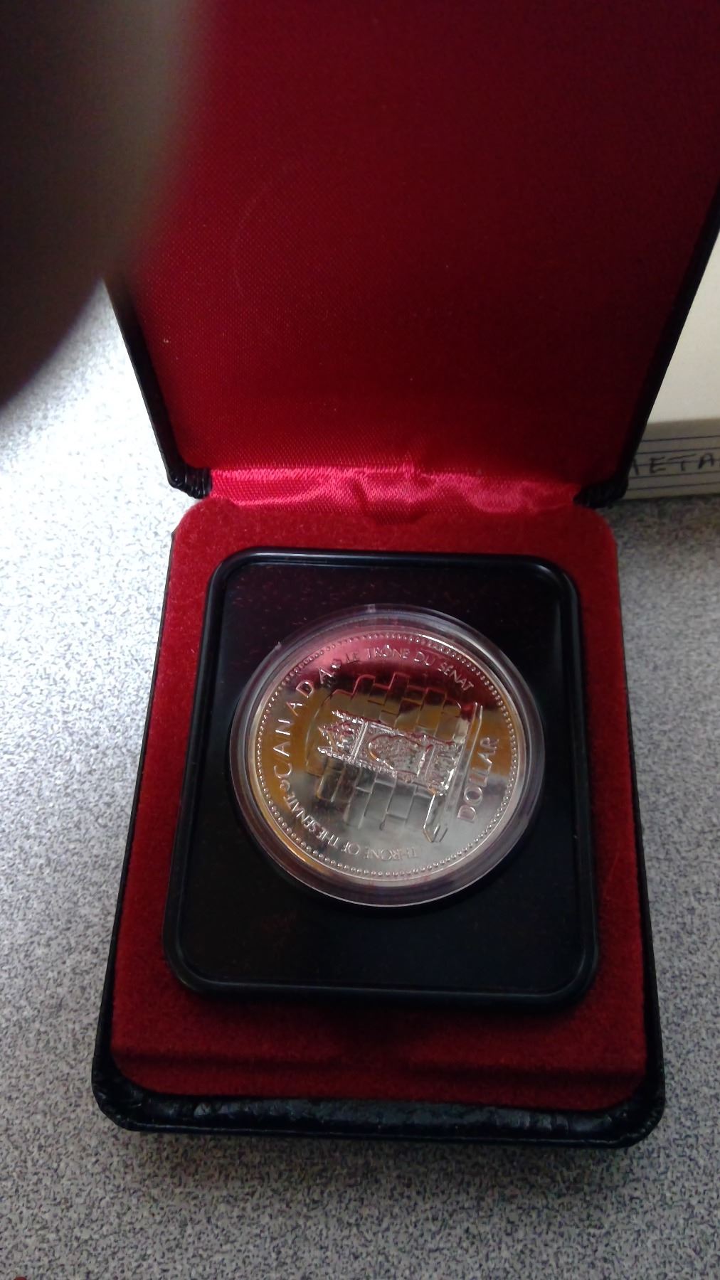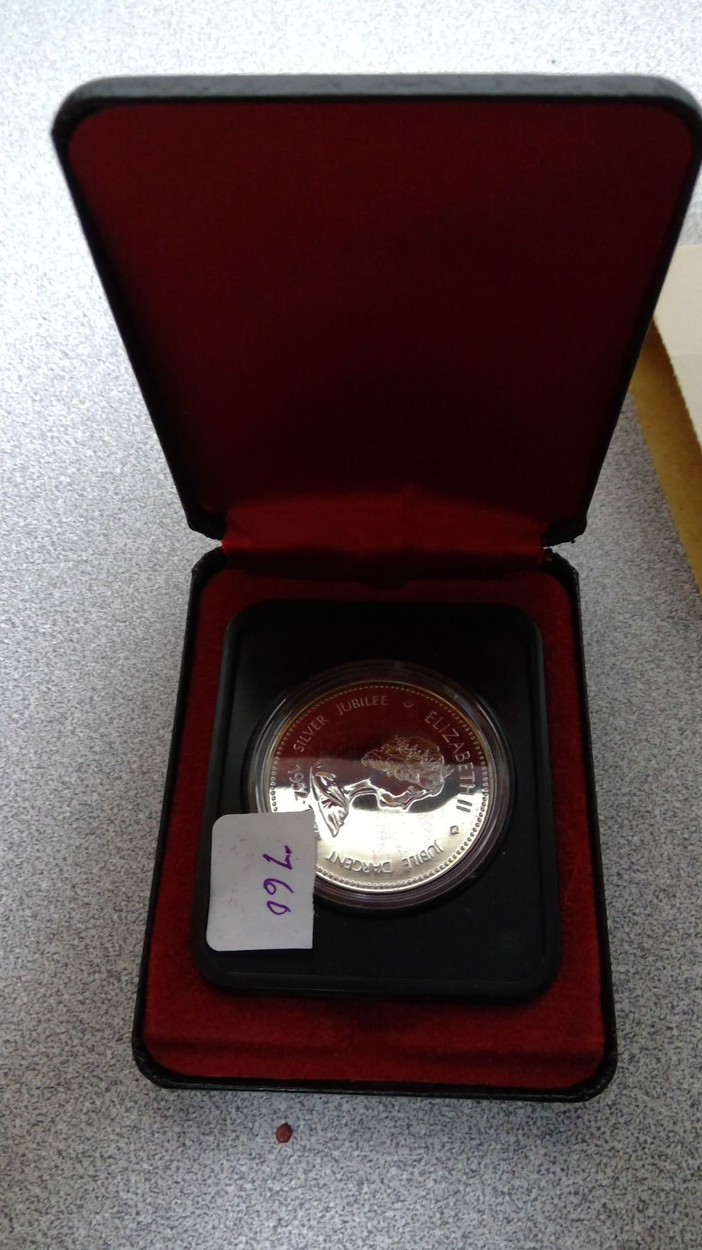 1977 RCM Silver Dollar "1952-1977 QE" original case and cardboard sleeve
