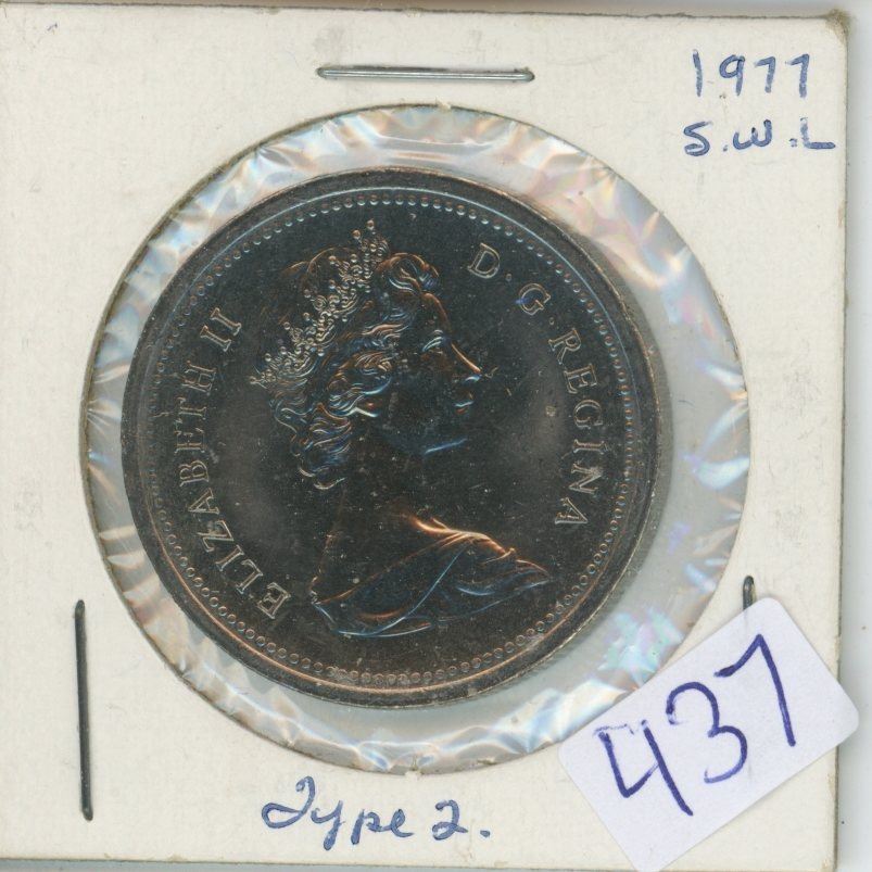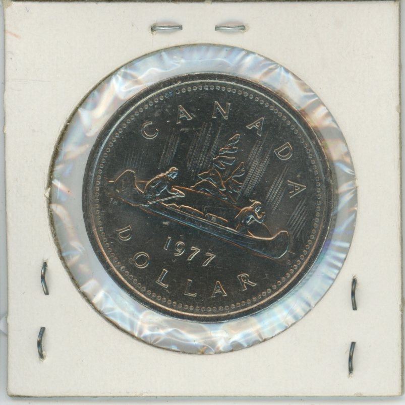 1977 Short Water Lines Canadian Nickel Dollar. MS-63.