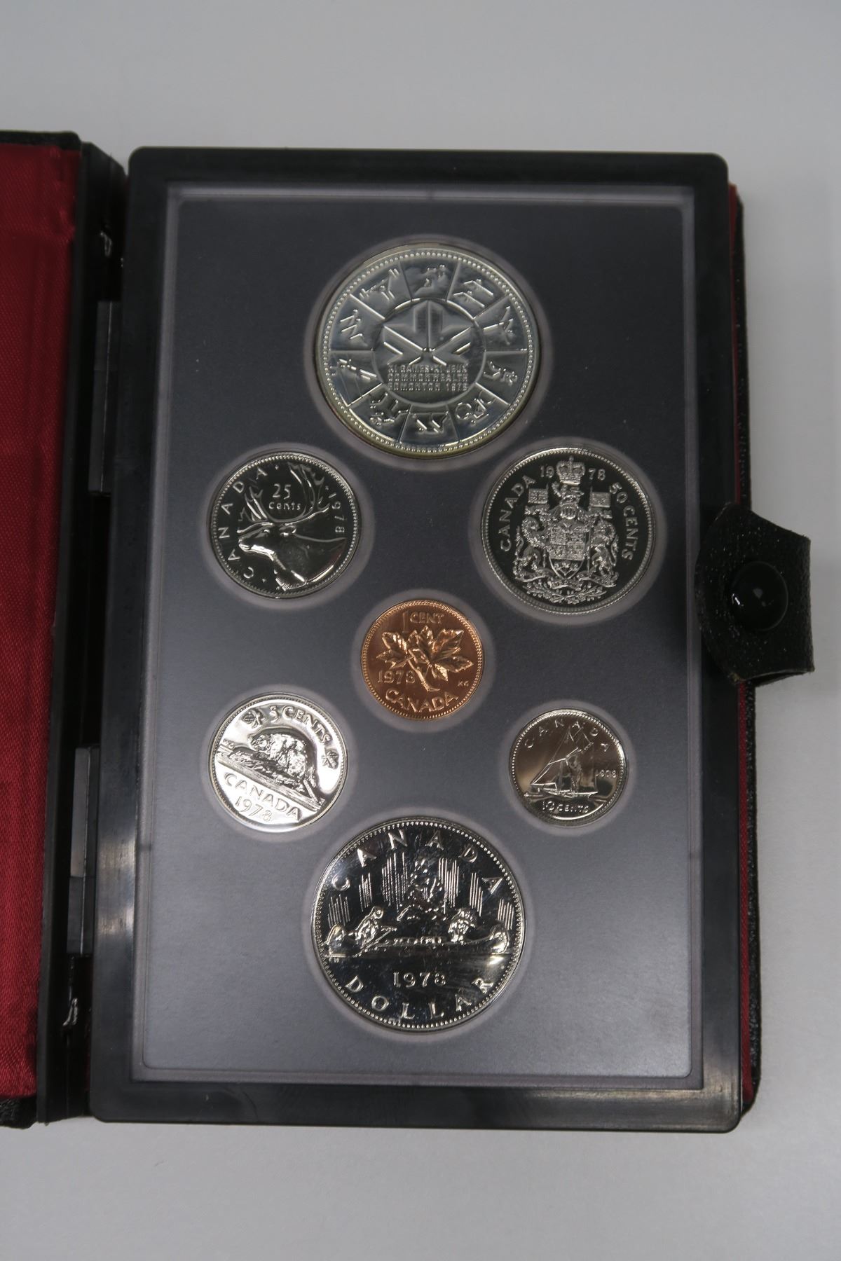 1978 Canadian 7-coin Prestige Double Dollar Specimen Set. Includes Silver Dollar that celebrates the Commonwealth Games in Edmonton. Specimen. In original case of issue.