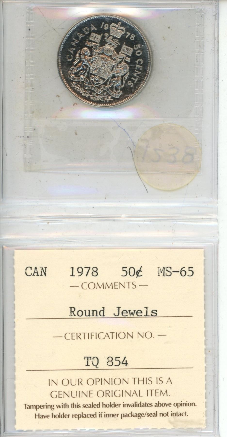 1978 Canadian Fifty Cents - ICCS MS-65 Round Jewels