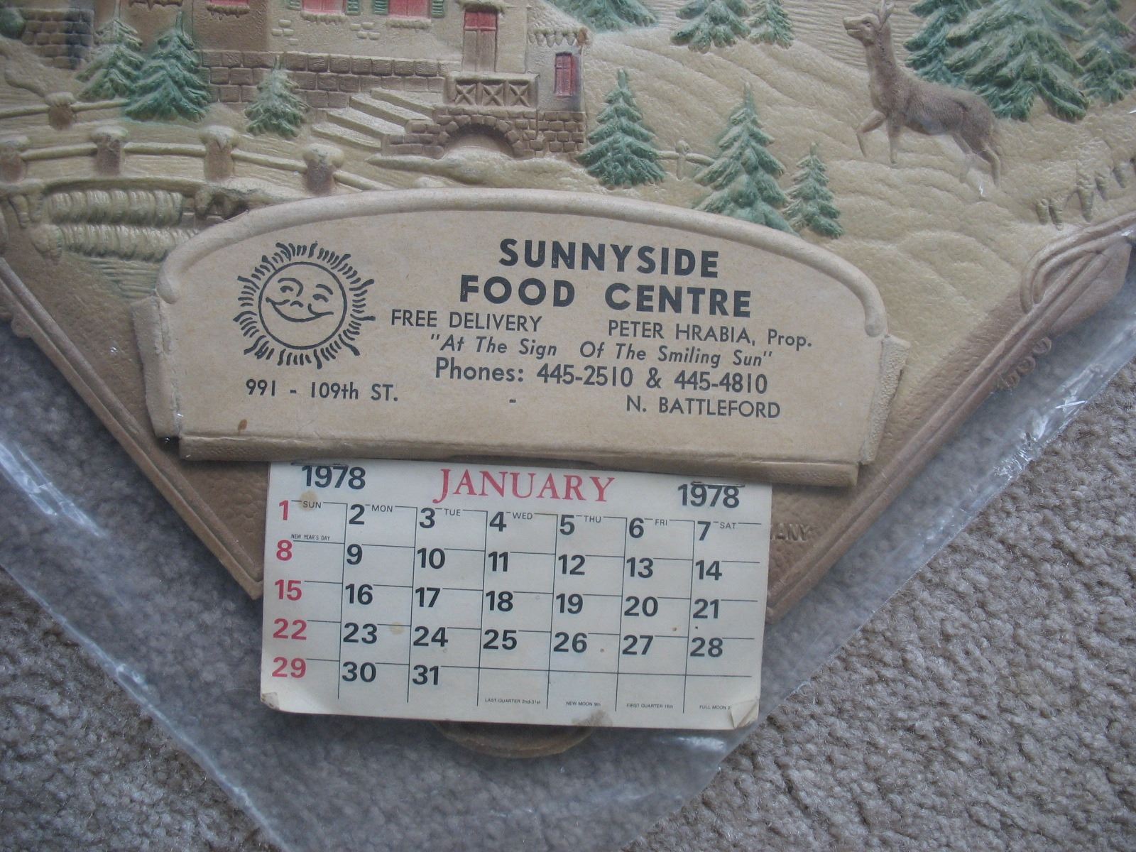 1978 EMBOSSED CALENDAR - SUNNY SIDE - NORTH BATTLEFORD