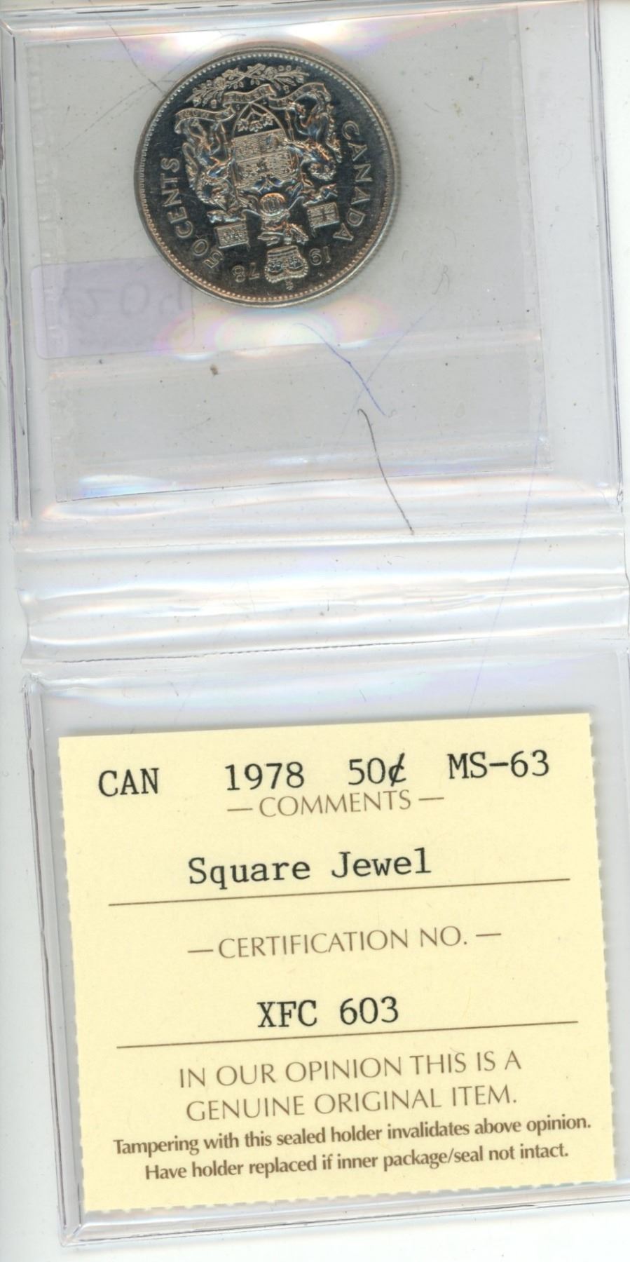 1978 ICCS Graded - Canadian Fifty Cent - Square Jewel - MS63