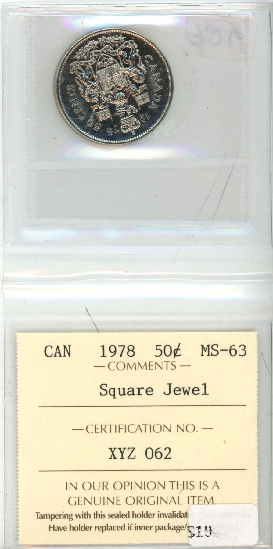 1978 Square Jewel 50 Cents. ICCS graded MS-63 Square Jewel.