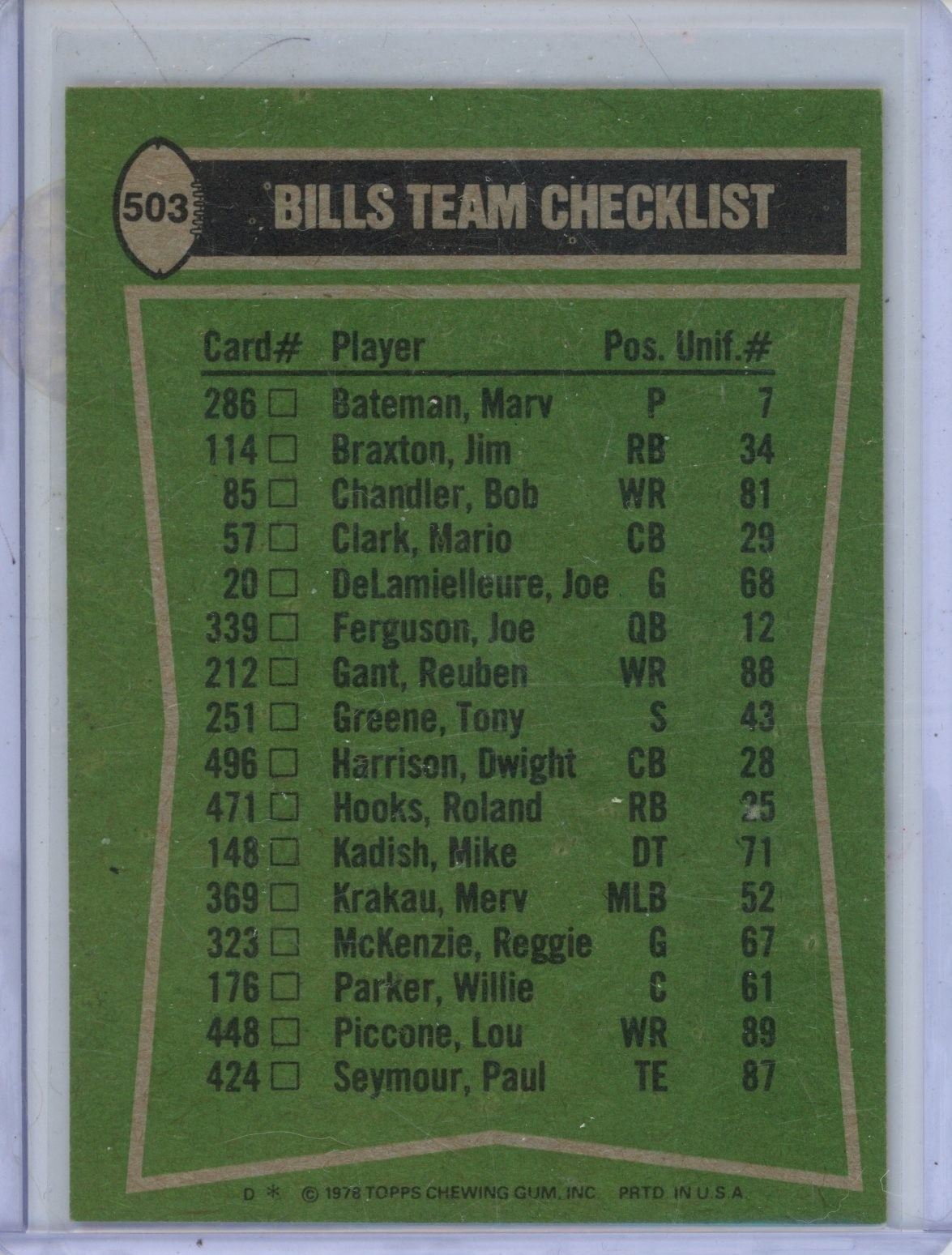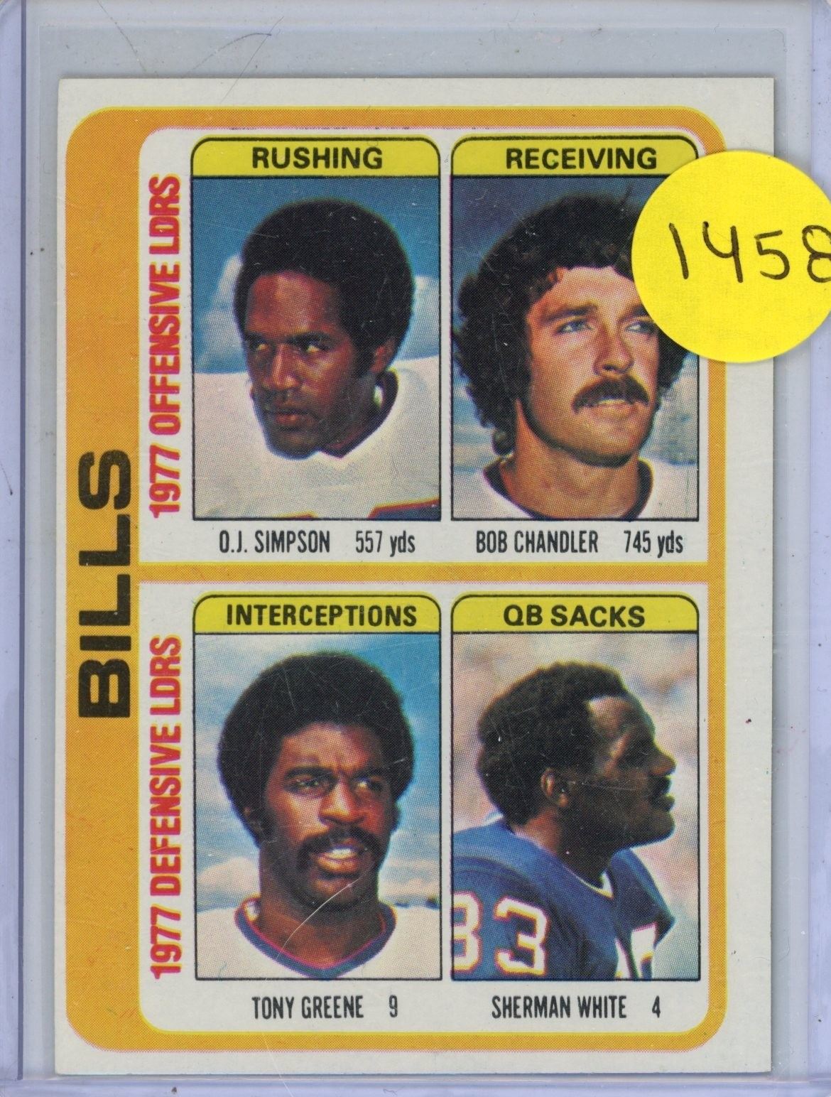 1978 Topps Bills Leaders. (O.J. Simpson, Bob Chandler, Tony Greene, Sherman White)