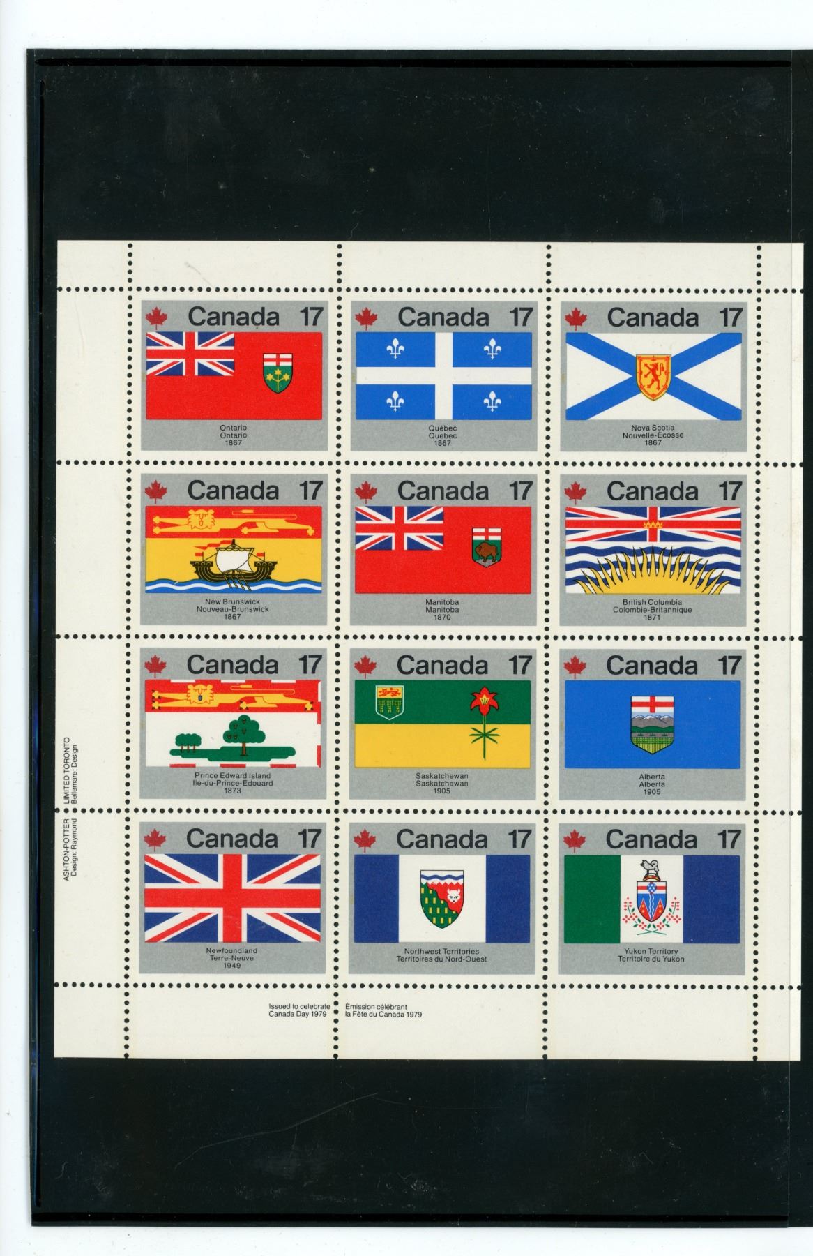 1979 Block of 12 Canadian 17 Cents Stamps, one for each province & territory. Mint.