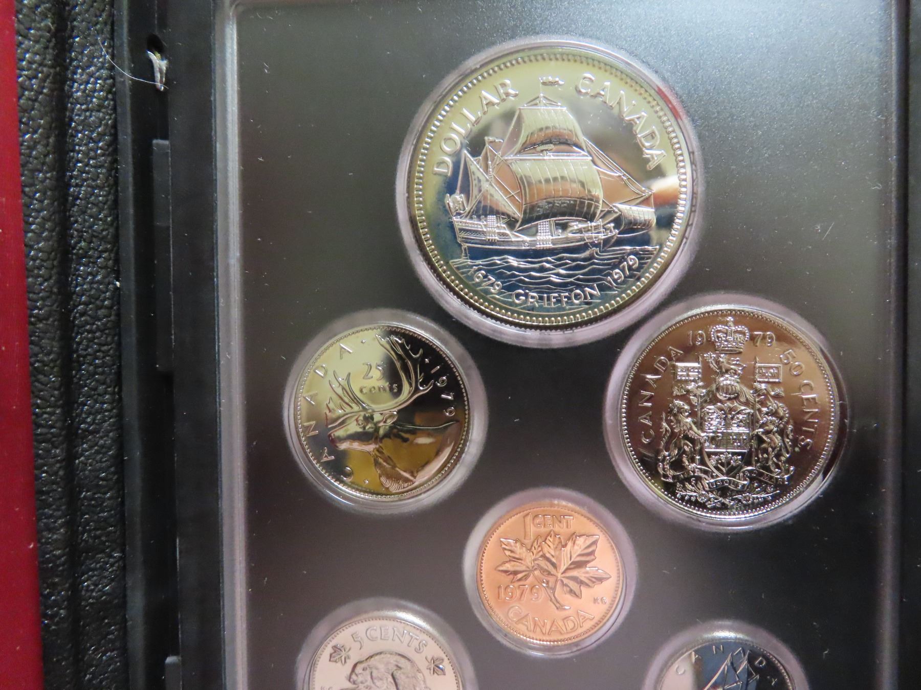1979 Double Dollar Prestige Specimen Set. Silver Dollar commemorates the 300th Anniversary of the first sailing of the Griffon. Housed in its original Royal Canadian Mint case of issue. Includes Certificate of Authenticity.