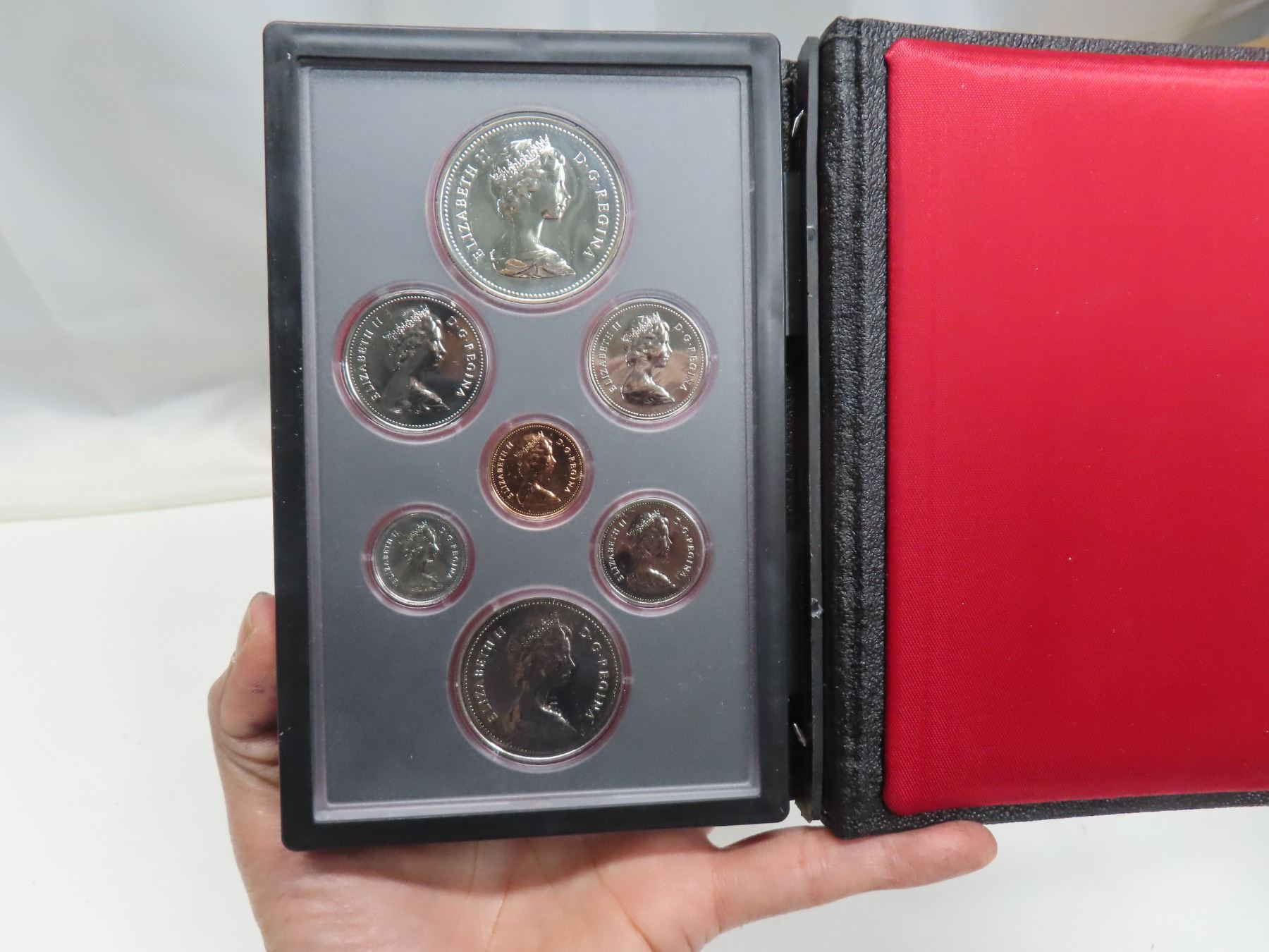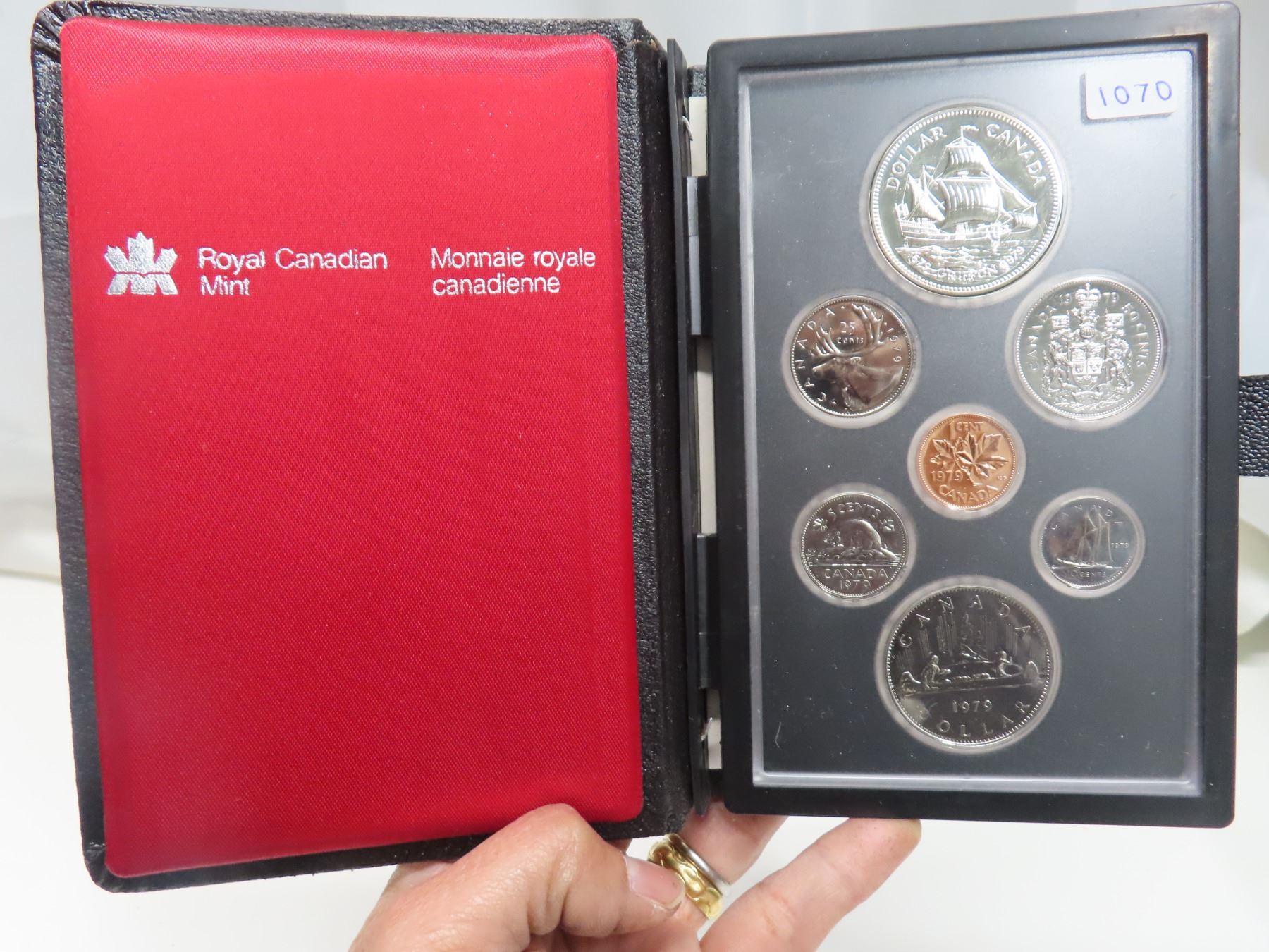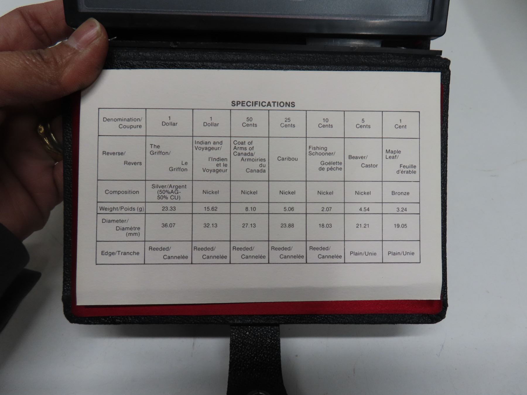 1979 Double Dollar Specimen Set. The Silver Dollar commemorates the 300th Anniversary of Griffon, the first ship to sail the Great Lakes above Niagara Falls. Housed in its original Royal Canadian Mint case of issue. Includes Certificate of Authenticity.