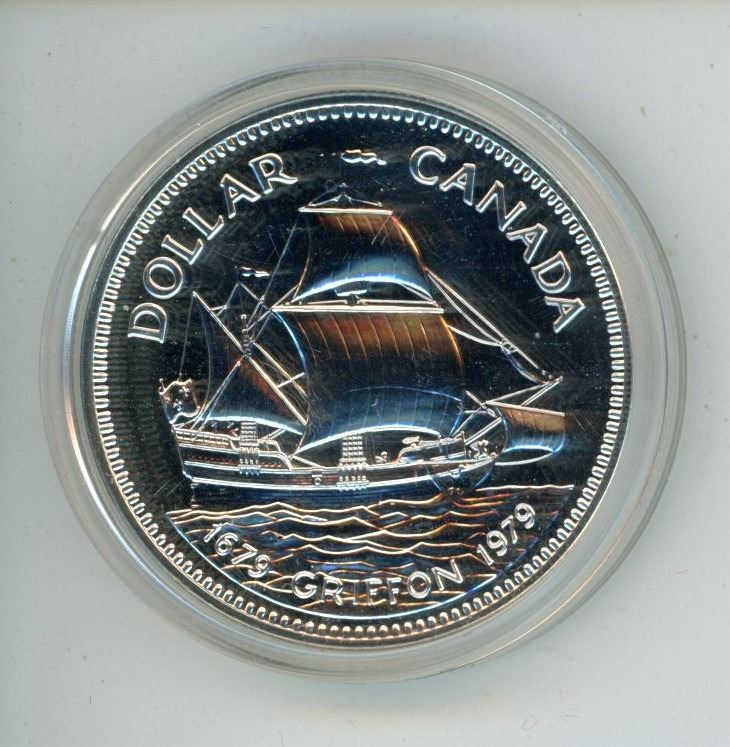 1979 Griffon Canadian Silver Dollar. 300th Anniversary of the first sailing of this famous ship. Specimen. Bright White.