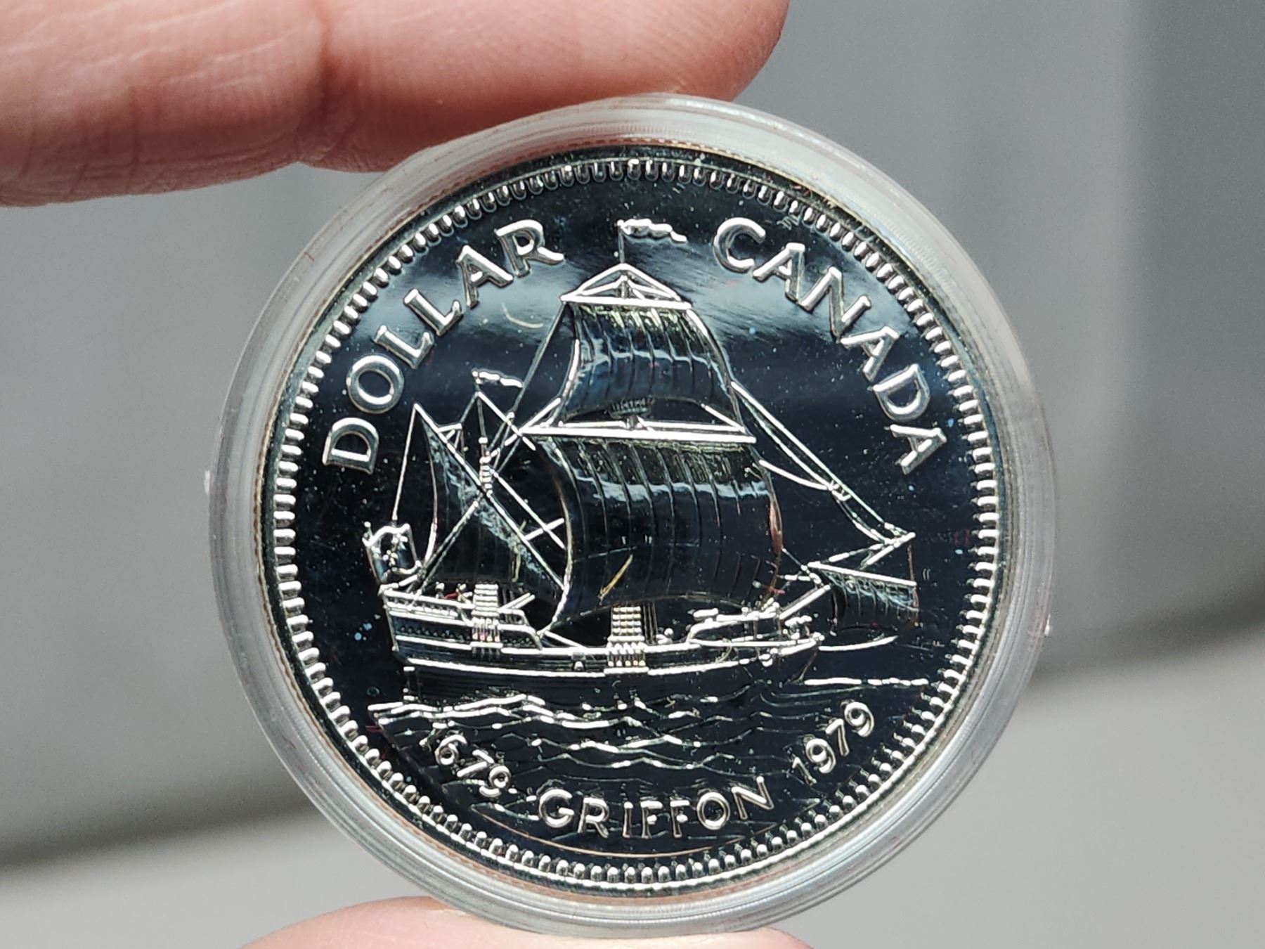 1979 "Griffon" Canadian silver dollar, in original black case