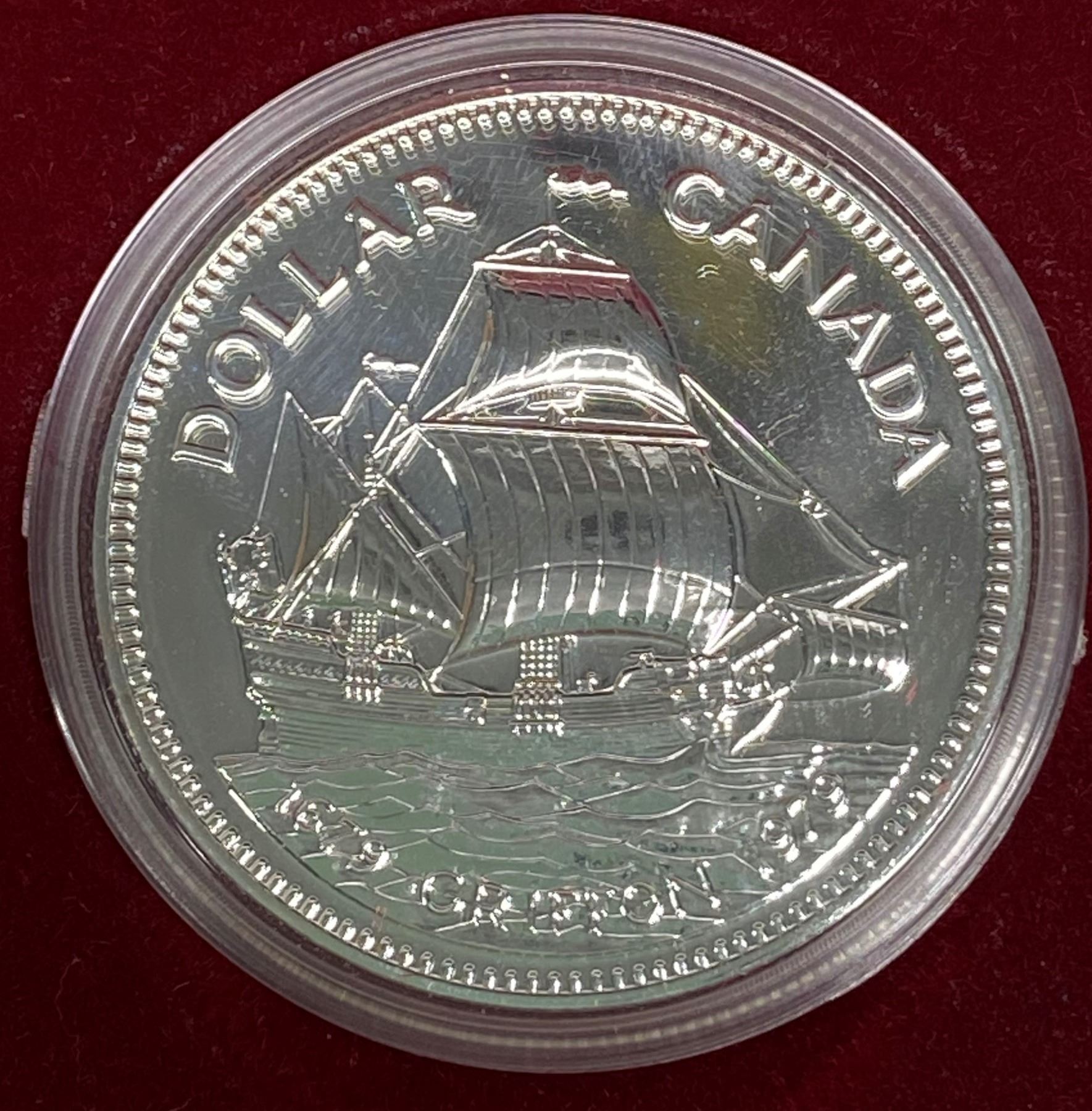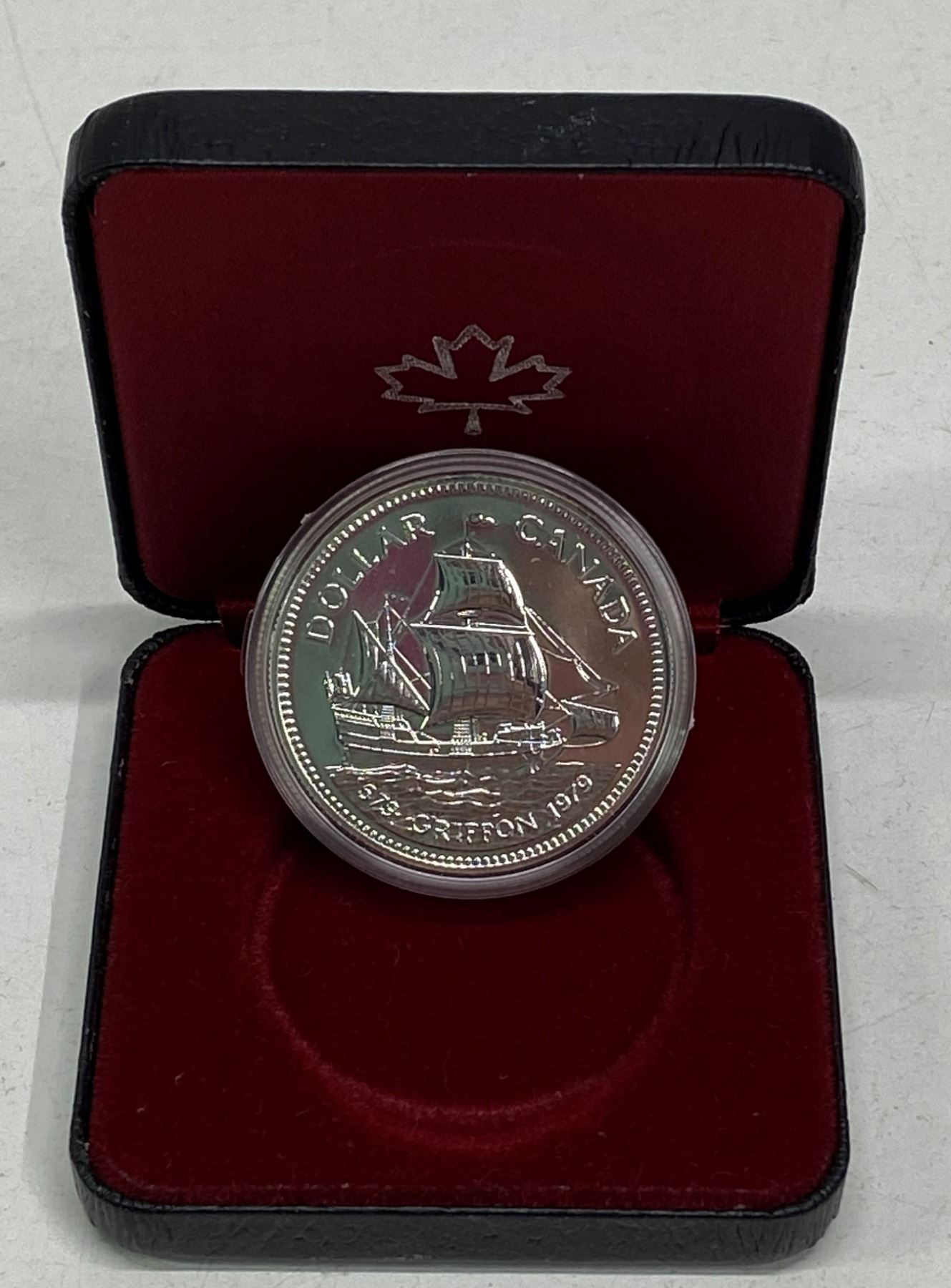 1979 Griffon Centennial Silver Dollar. Commemorates the 300th Anniversary of the first commercial ship on the Great Lakes. Specimen. Bright White. Housed in its original case of issue.