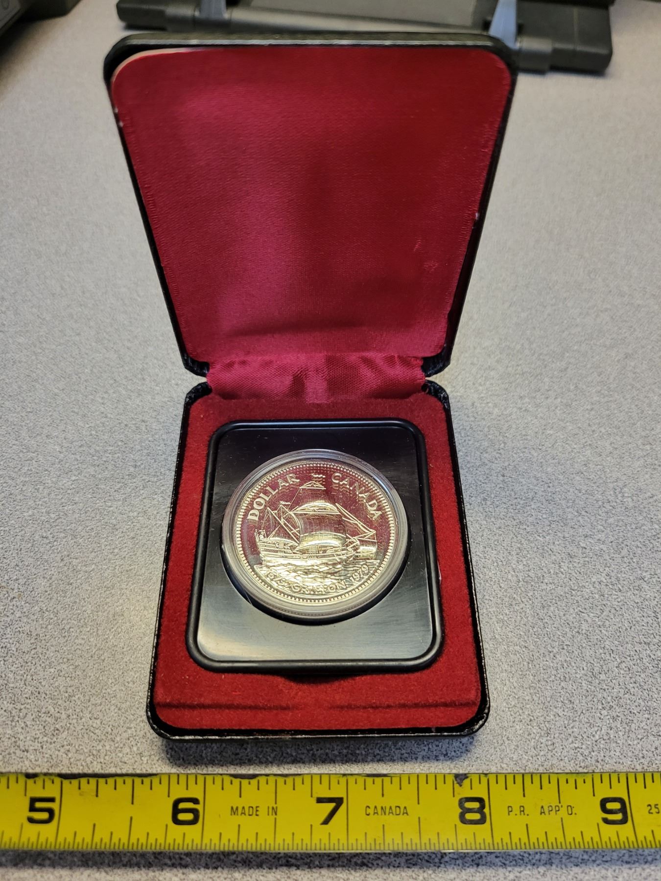 1979 Griffon Silver Dollar. 300th Anniversary of the first voyage by a commercial ship on the Great Lakes. Specimen. Housed in its original case of issue.