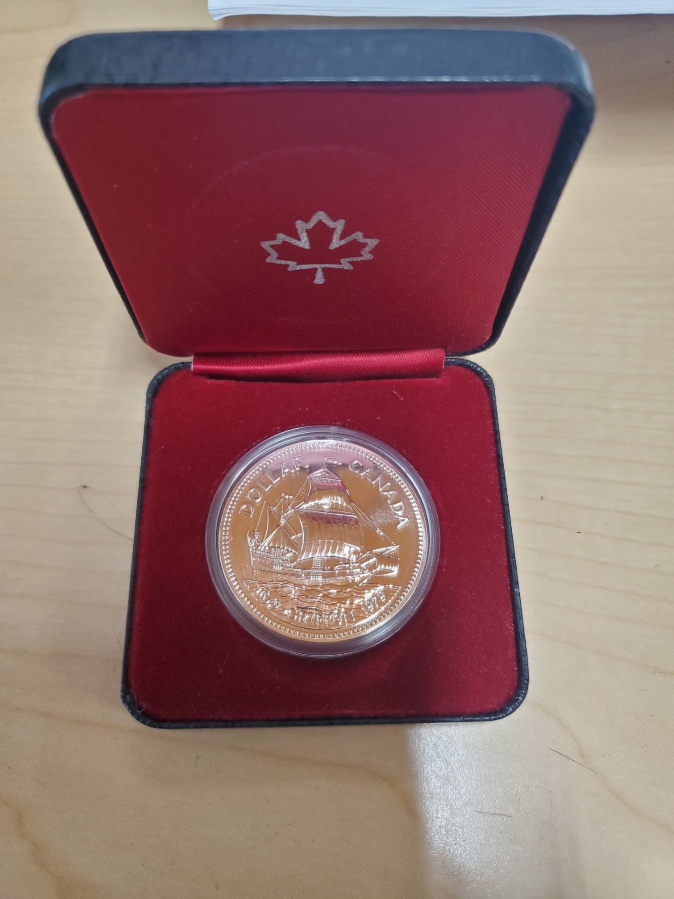 1979 Griffon Silver Dollar. 300th Anniversary of the first voyage of a commercial ship on the Great Lakes. Specimen. Bright White. Housed in a case.