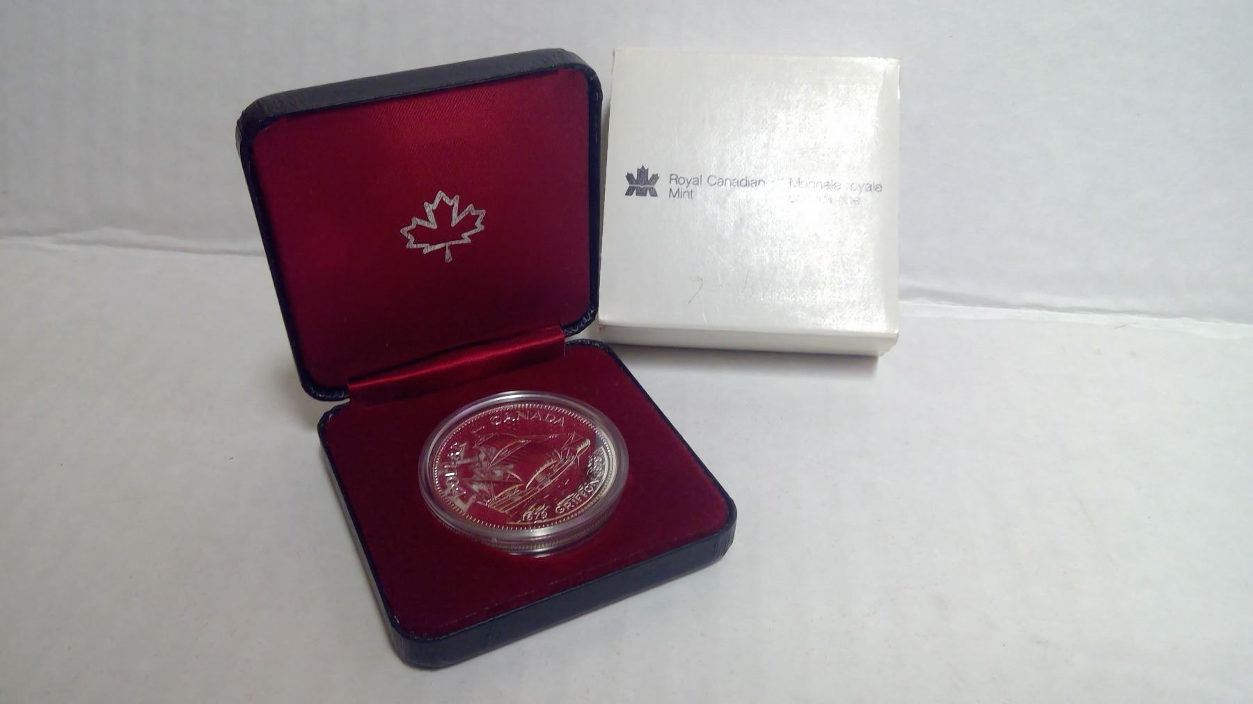 1979 Griffon Specimen Silver Dollar. 300th Anniversary of the first voyage by a commercial ship on the Great Lakes. In case and box of issue.