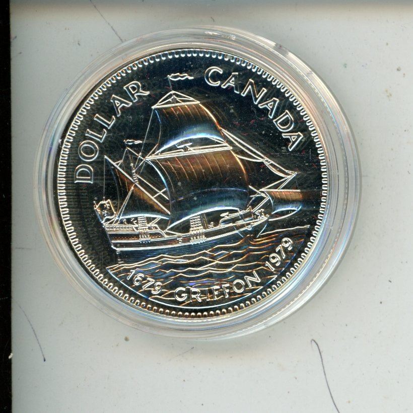1979 canada $1 proof silver coin: the griffon tricentennial (50% silver)