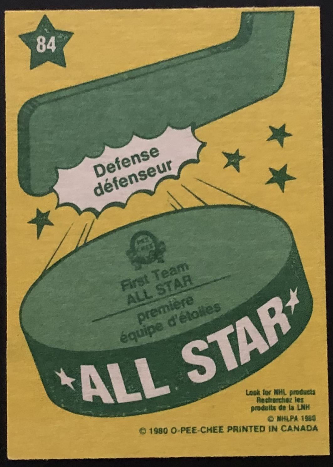 Card #84 hockey, NHL, vintage, OPC, hall of fame