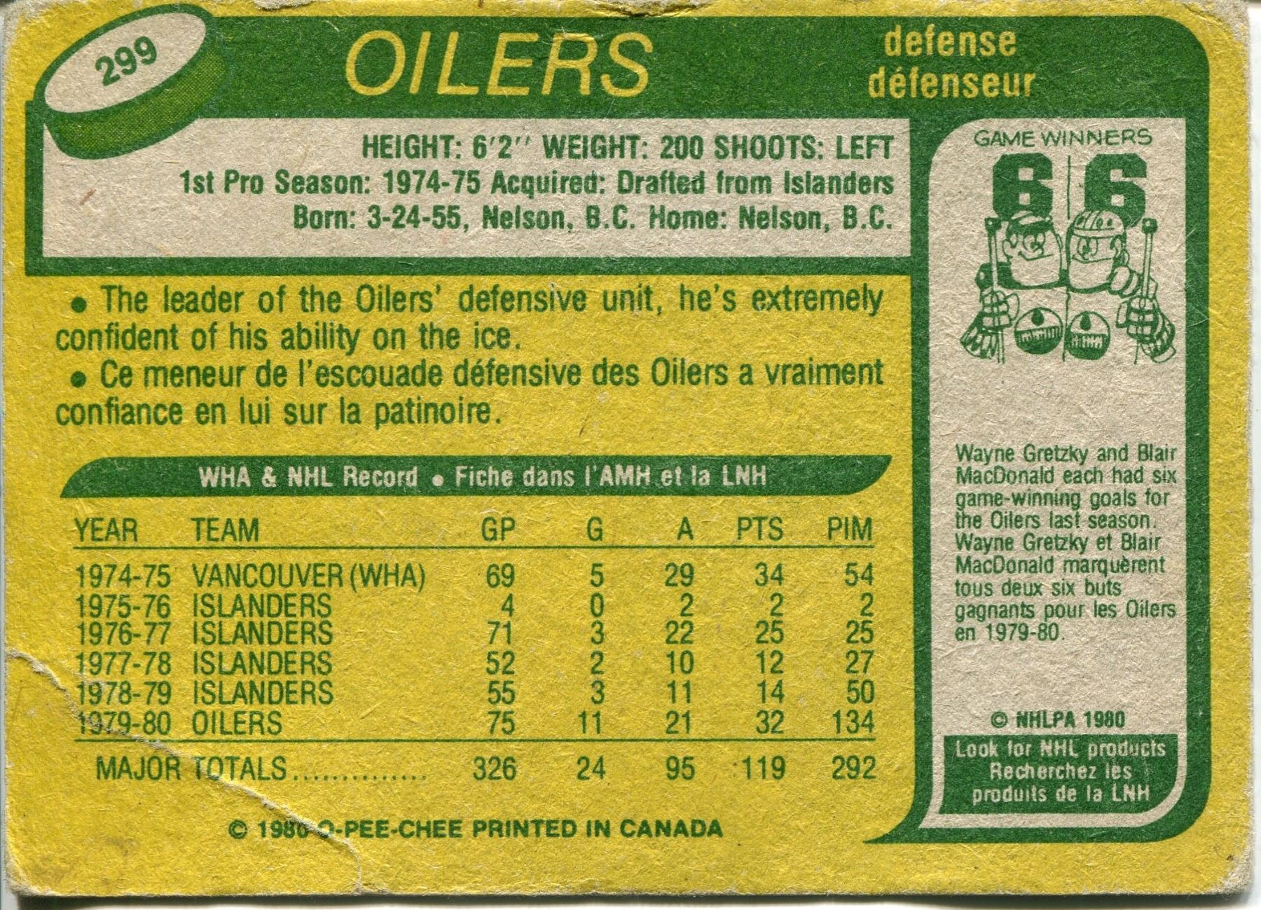 1980/81 OPC CARD PAT PRICE