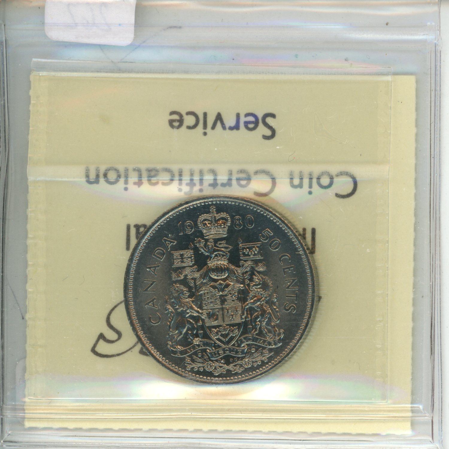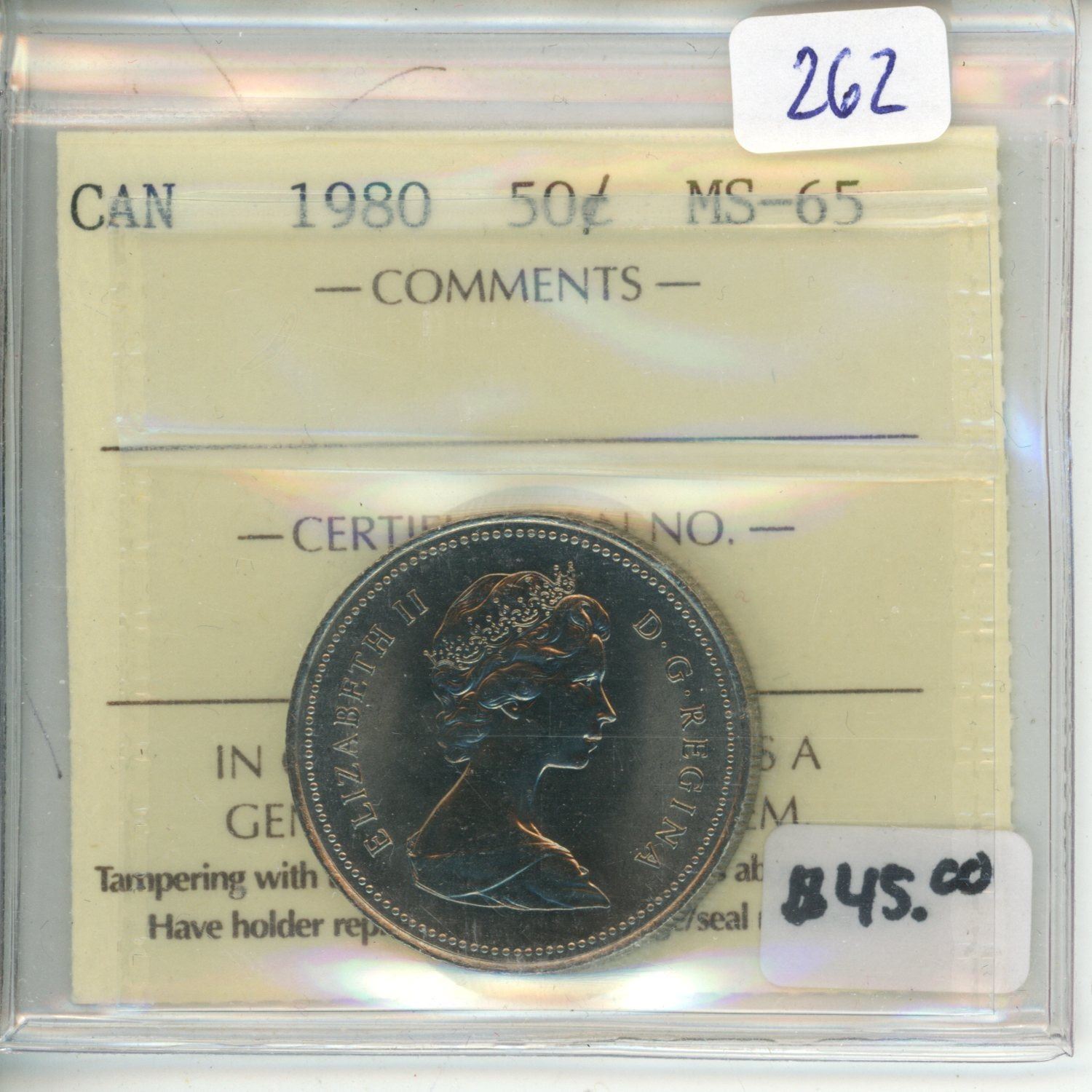 1980 Canadian 50 cents, ICCS certified & graded MS-65.