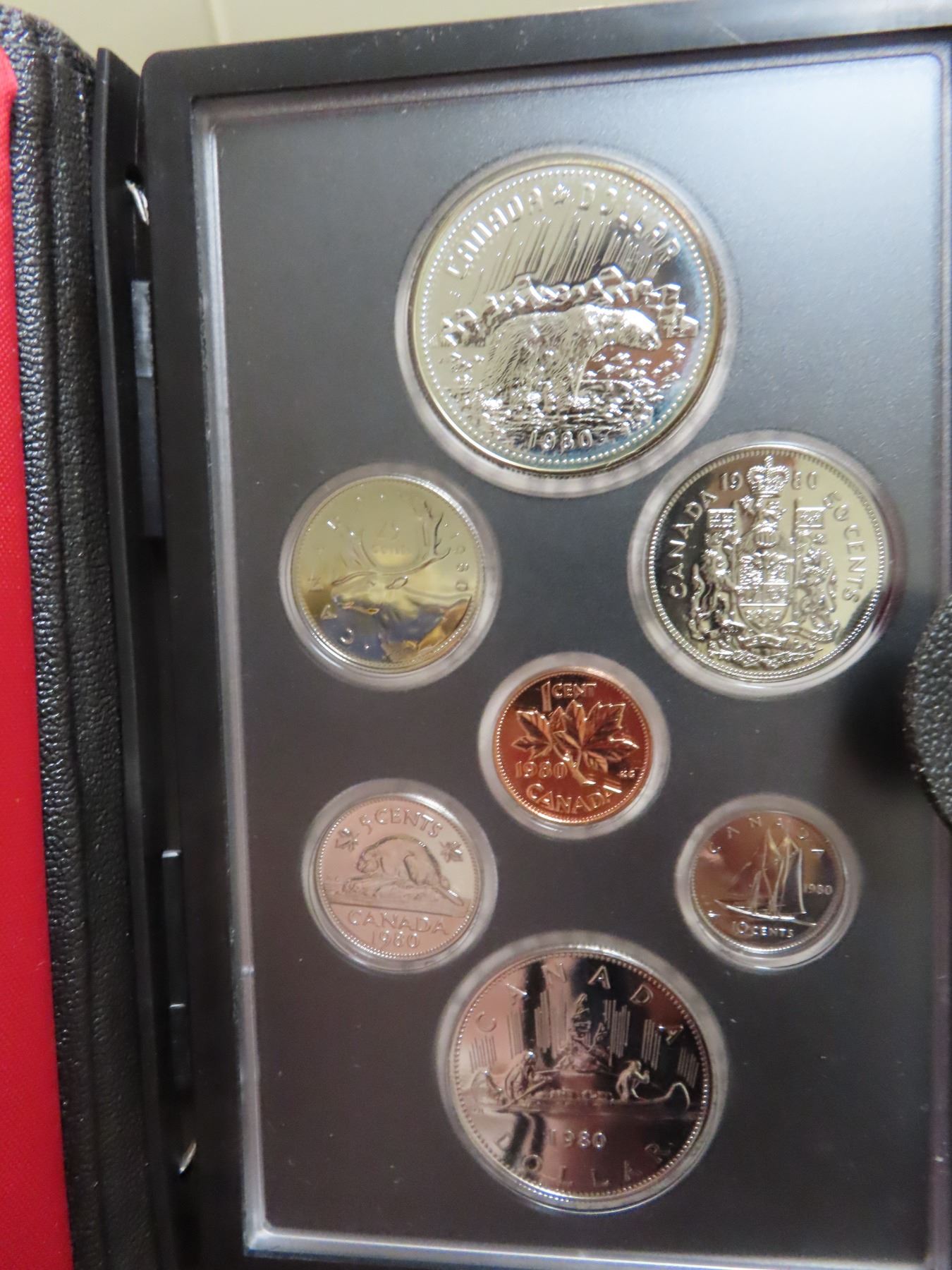 1980 Double Dollar Prestige Specimen Set. Silver Dollar commemorates the 100th Anniversary of Great Britain ceding the Arctic Islands to Canada. Popular polar bear. Housed in its original Royal Canadian Mint case of issue. Includes Certificate of Authenticity.