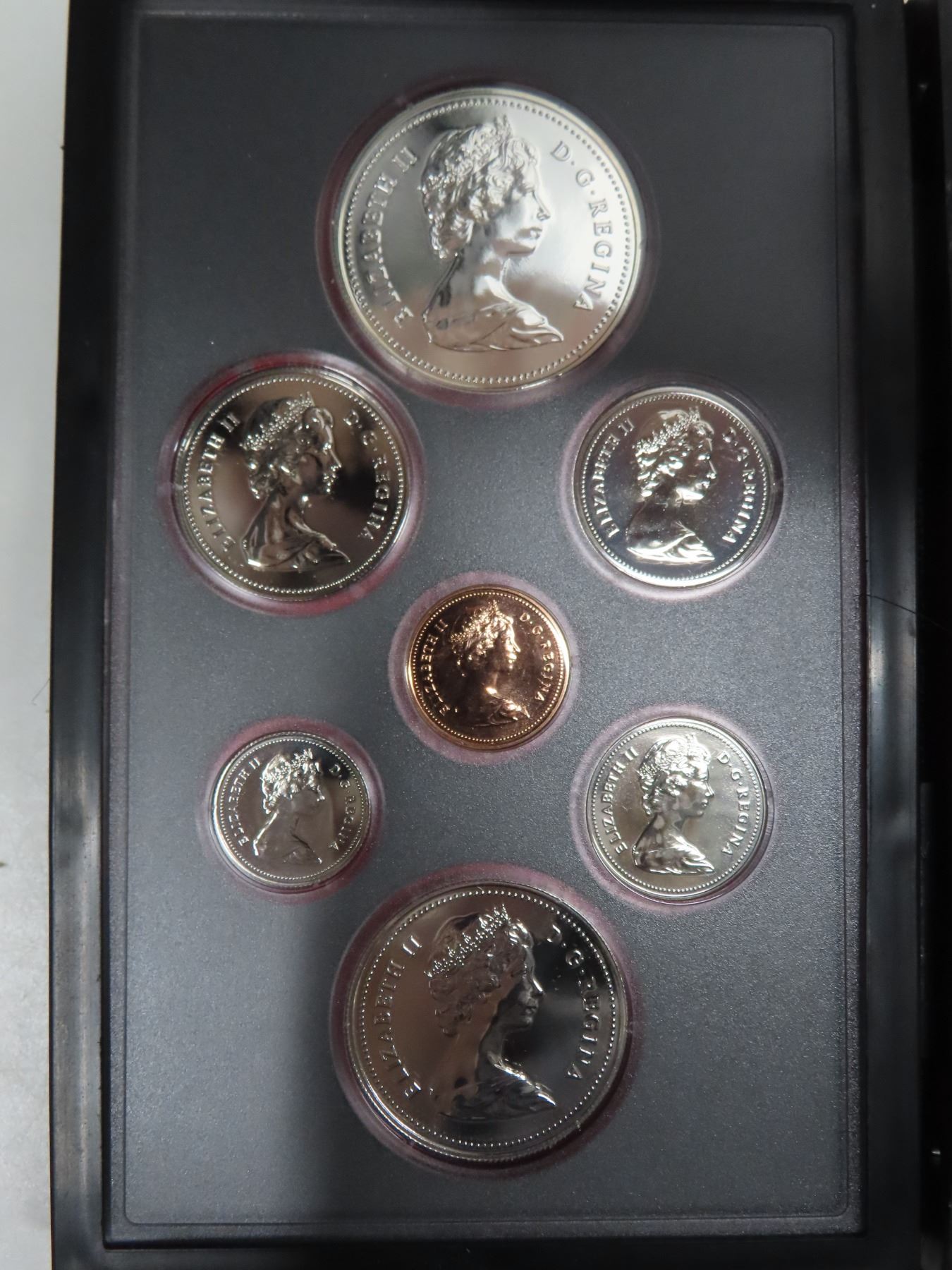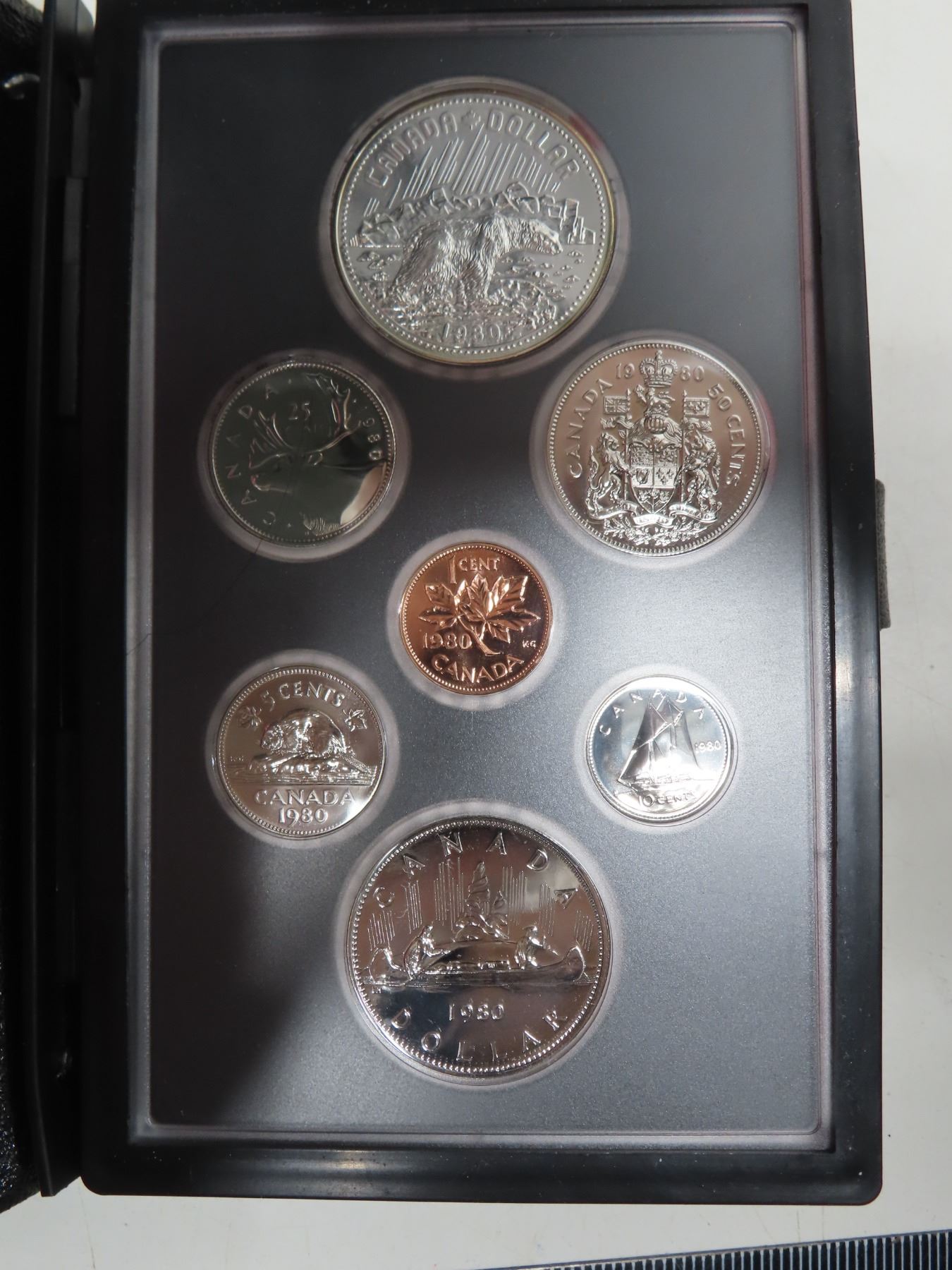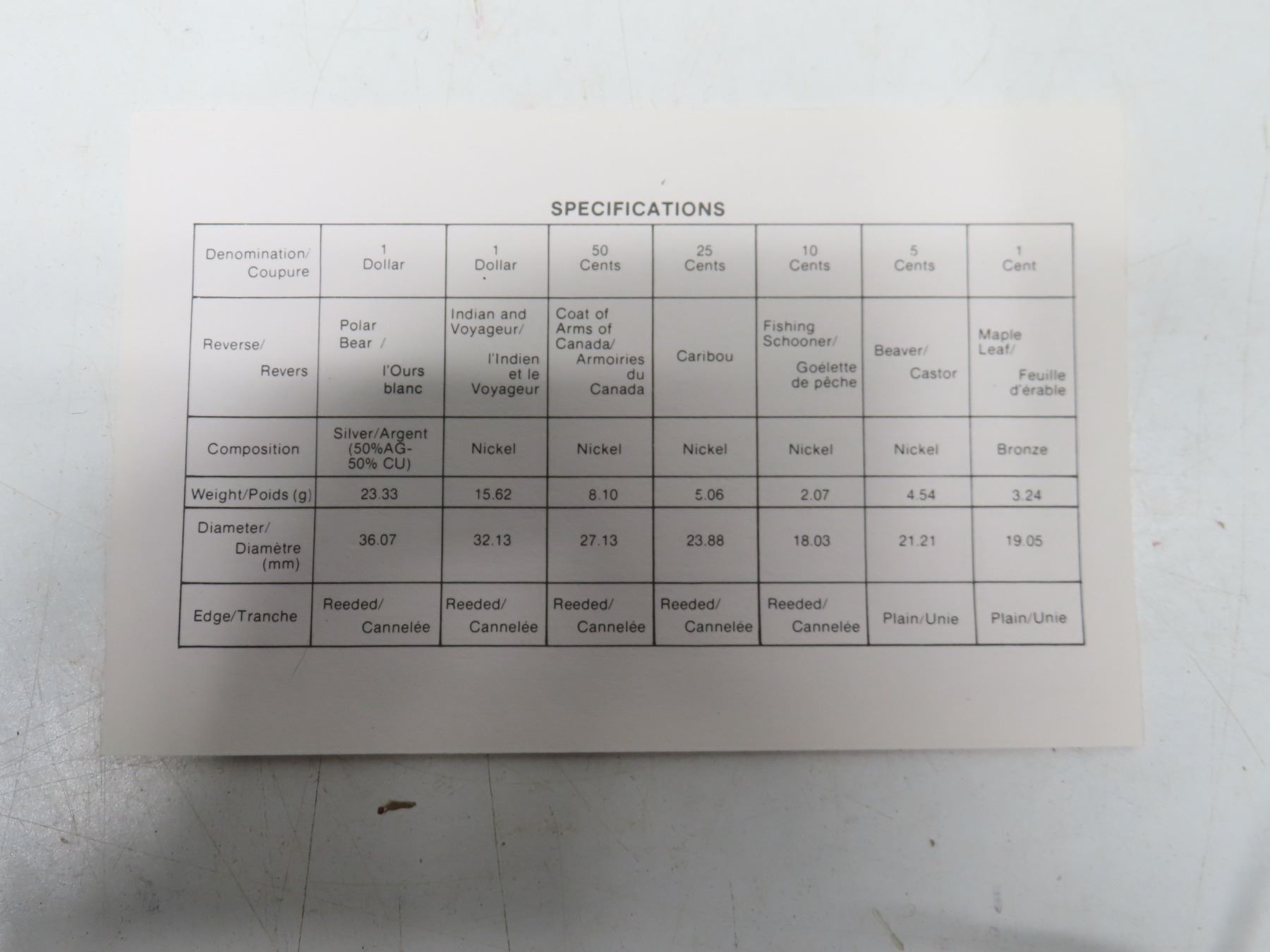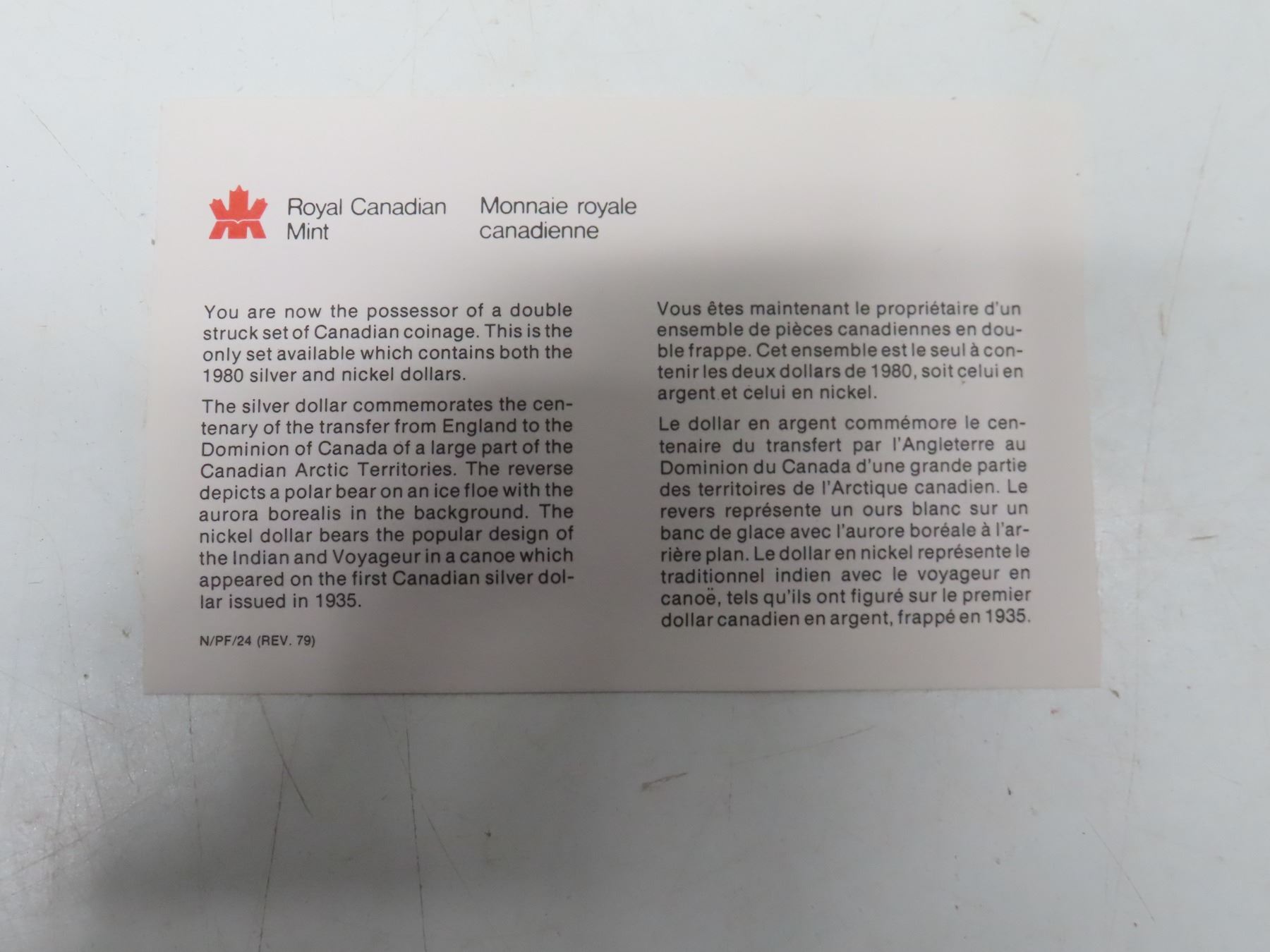 1980 Double Dollar Prestige Specimen Set. The Silver Dollar commemorates the 100th Anniversary of Great Britain ceding the Arctic Islands to Canada. Popular Polar Bear. 7-coin set. Includes Certificate of Authenticity. Housed in its original Royal Canadian Mint case of issue.
